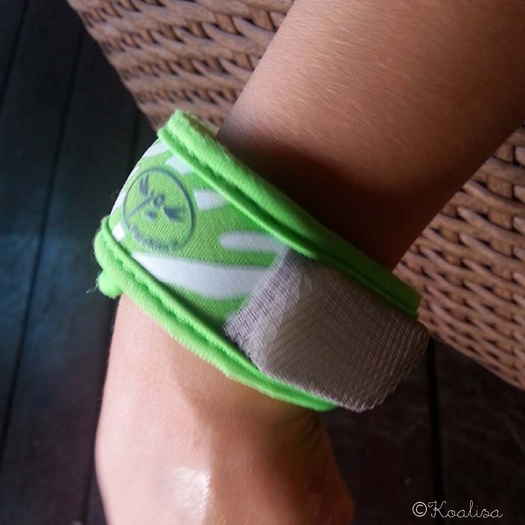 C’est ainsi que j’ai découvert les produits Parakito, en vente sur le web ou en pharmacie. Il s’agit de produits anti-moustiques, notamment des bracelets aux coloris très sympas où l’on place de petites plaquettes aux huiles essentielles. Canaillou et moi en avions au bras et à la cheville (bras droit et cheville gauche par exemple), et nous nous badigeonnions de gel roll-on Parakito aux huiles essentielles, très facile à appliquer (par-dessus la crème solaire, je précise ).
