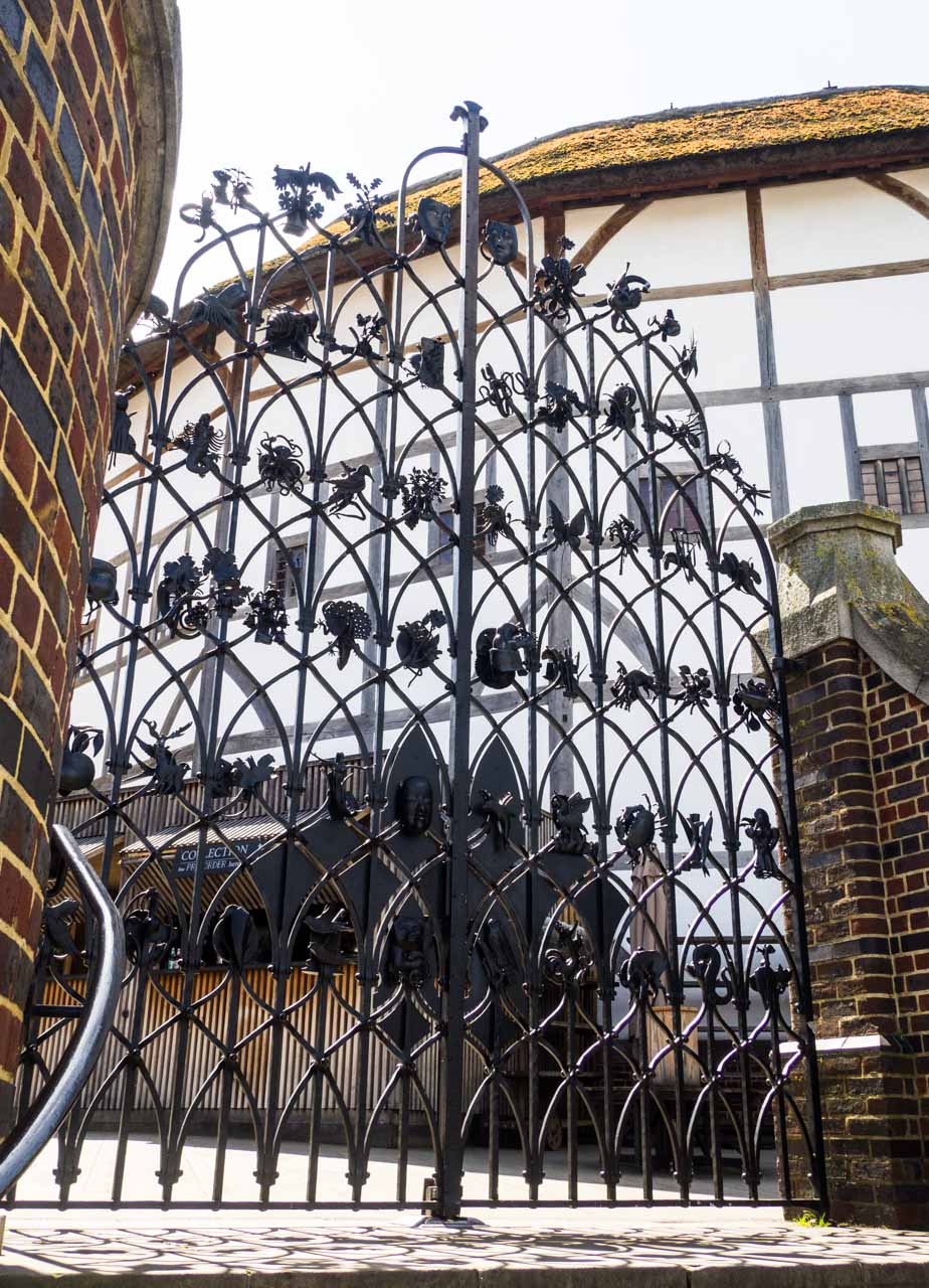Il a ceci de particulier qu’il est circulaire et semi-couvert. De l’extérieur, on dirait une immense maison à colombages. On peut admirer un portail en fer forgé qui ne s’ouvre que pour la Reine d’Angleterre. De nombreux artisans venus du monde entier ont contribué à sa réalisation et l’ont orné d’une multitude de symboles ayant trait aux pièces du Barde.
