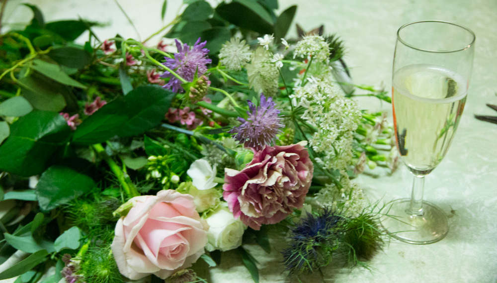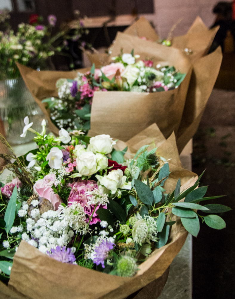 Après le troisième verre, les inhibitions créatives se sont levées et il faut reconnaître que nous avons tous bien réussi nos bouquets…