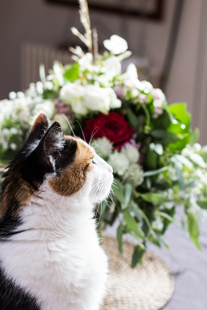 Et il y en a une que ça intéresse beaucoup, même si elle n’en a pas l’air, croyez-moi, elle est bien vite passée à l’attaque. Du coup, j’ai déplacé le bouquet car j’ai envie de le garder le plus longtemps possible…