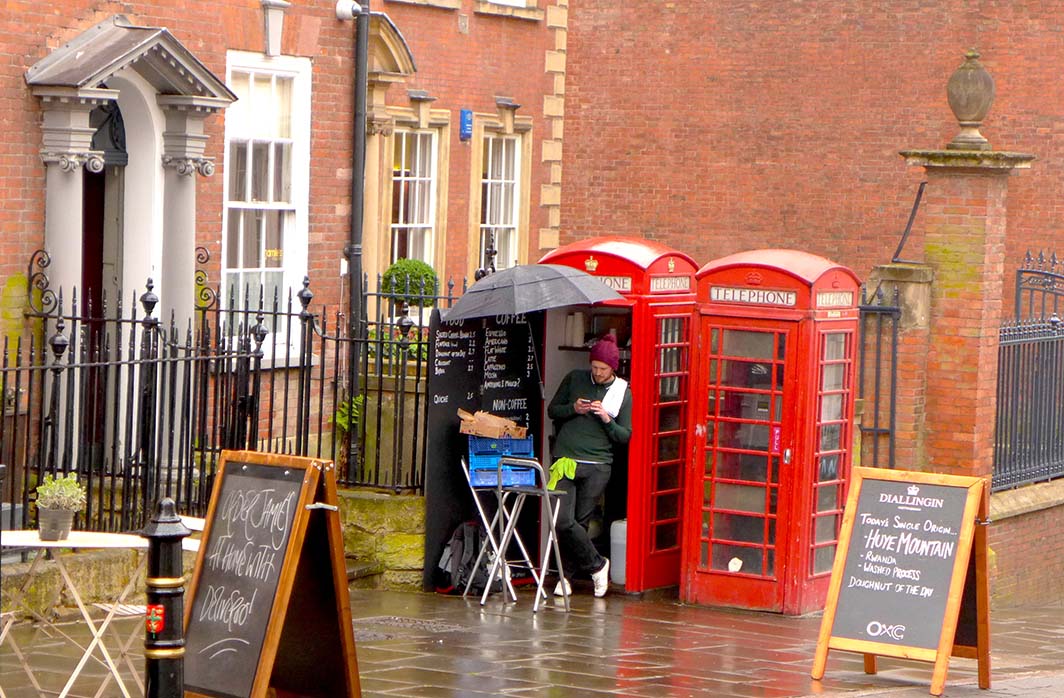 Et je n’ai pas arrêté de voir des cabines téléphoniques rouges, dont une qui est sans doute le plus petit café du monde ! On peut s’y faire servir un cappuccino ou un latte…
