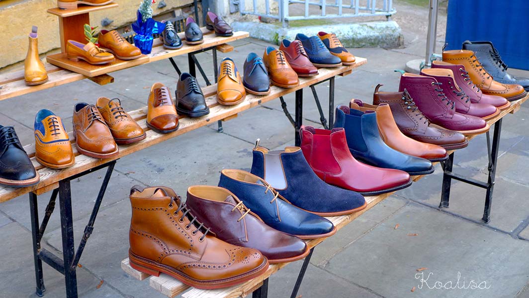Superbes photos. Le vendeur de chaussures n’a pas peur de la pluie et du soleil avec toutes ces belles paires bien étalées dehors.