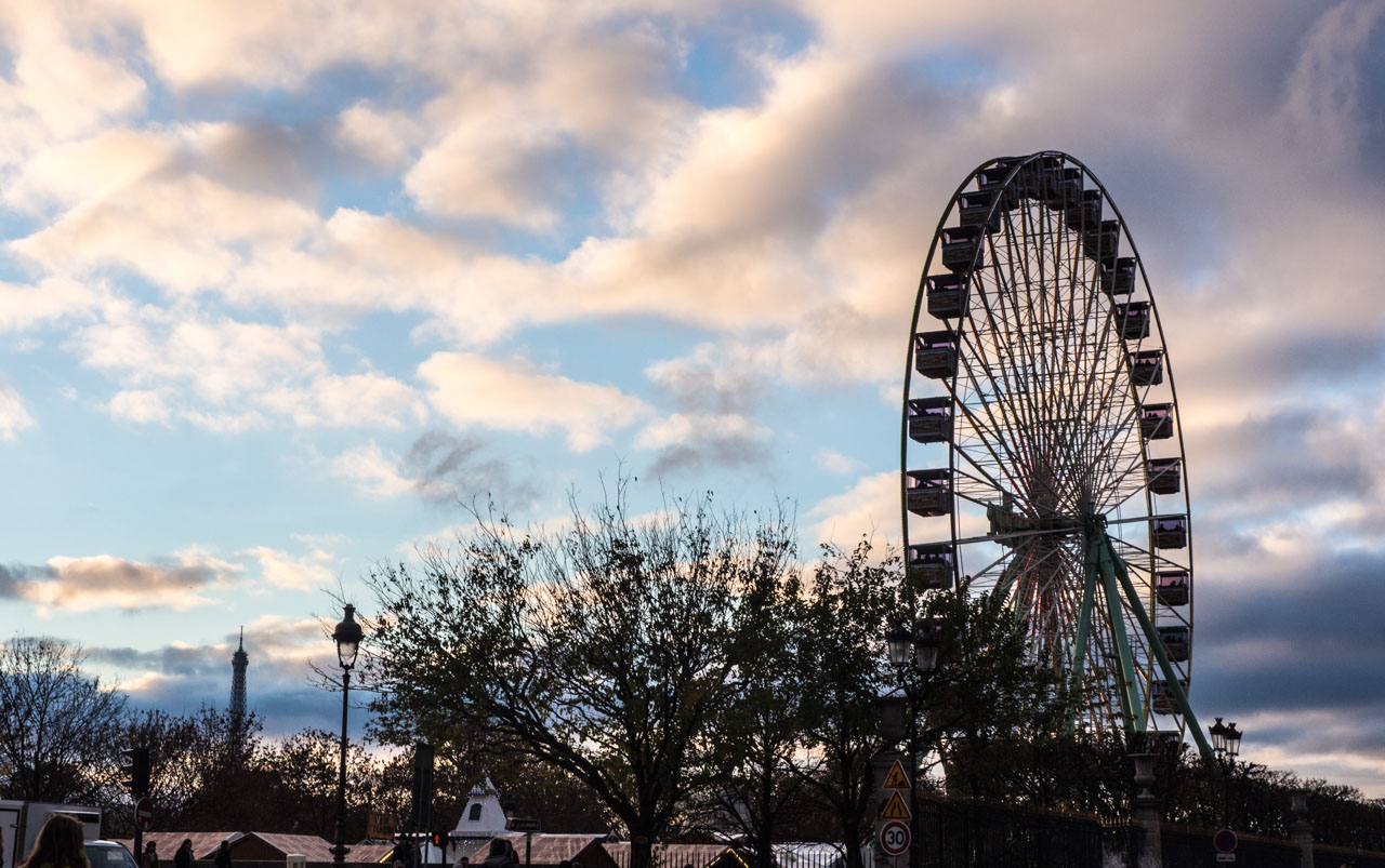 Alors que nous cherchions sans succès à rejoindre la place de la Concorde ( j’avais pris mes billets pour le musée du jeu de Paume bien avant de savoir qu’il y aurait des manifestations ce jour-là), j’en ai profité pour admirer de loin la grande roue et la Tour Eiffel (en vrai, en bas de la première photo, il y a la manif des gilets jaunes, mais j’ai recadré…).