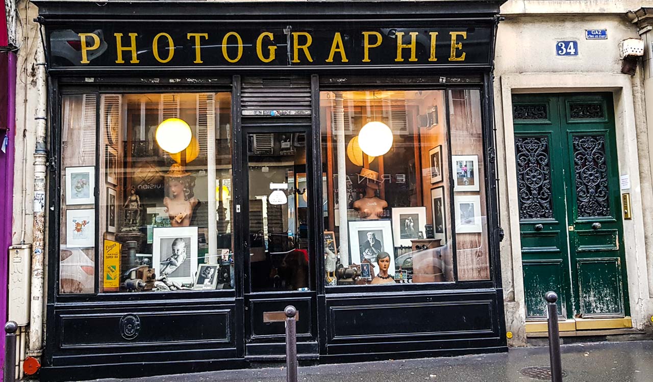 Le lendemain, on a beaucoup marché aussi , sous la pluie cette fois. J’ai fait connaissance avec le quartier des Batignolles, où vit mon fils. Il est chouette, ce quartier ! J’ai notamment admiré cette belle vitrine de photographe. Ce quartier m’a vraiment donné une autre image de Paris.