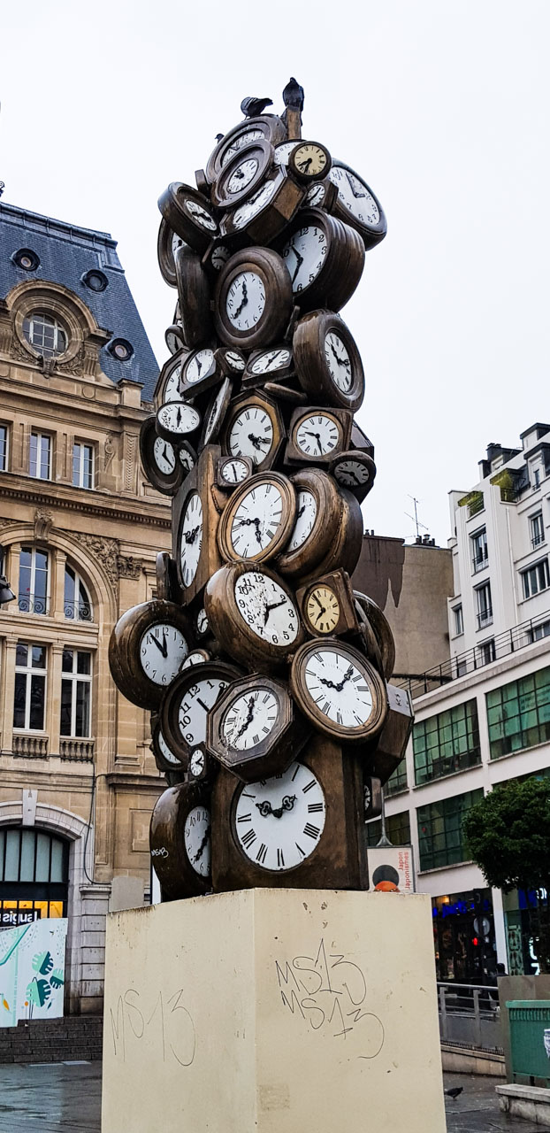 A la gare St Lazare on peut voir cette sculpture d’Arman, appelée L’Heure pour Tous , c’est une des dernières photos que j’ai faites ce week-end là, il m’a fallu ensuite rejoindre ma Bretagne. Mais je reviendrai, à Paris c’est promis !