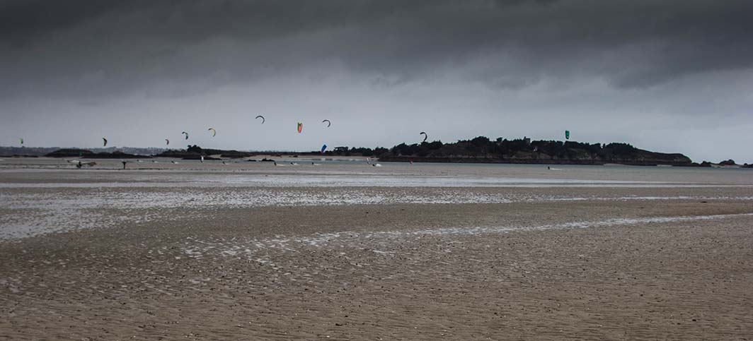 Et puis ce jour-là, les kite surfs étaient également de sortie et même si je n’y connais rien, le spectacle m’émerveille à chaque fois. Lancieux est un spot bien connu des amateurs de la région.