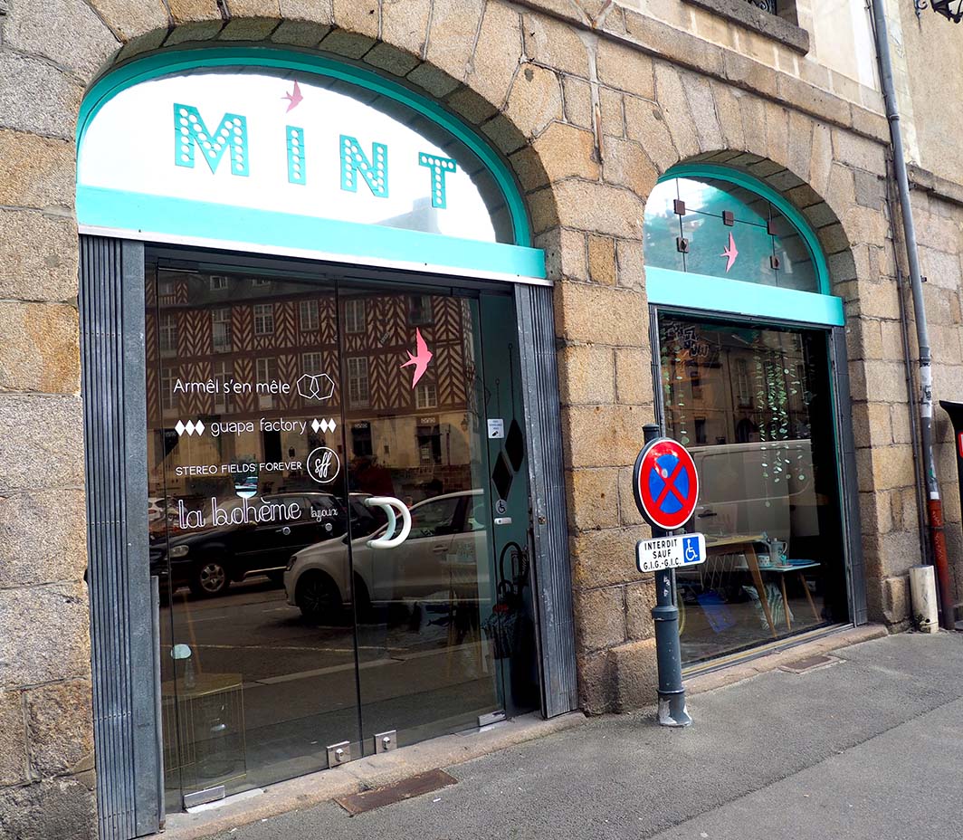 Je vous présente aujourd’hui Mint, une jolie boutique du centre-ville historique de Rennes. Plusieurs créatrices rennaises, Armêl s’en mêle, Guapa Factory, La Bohème et Stereo Fields Forever, se sont associées pour créer cette boutique proposant bijoux, vaisselle, déco, papeterie et trouvailles rétro.