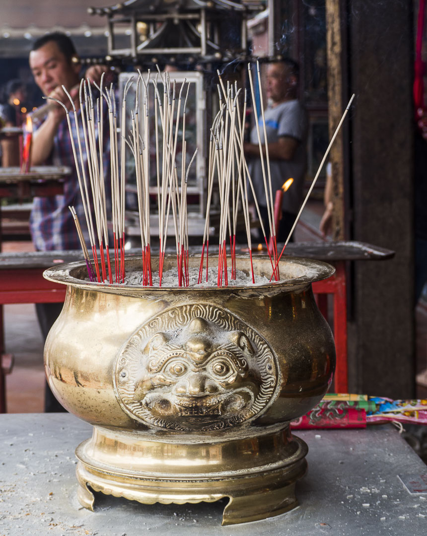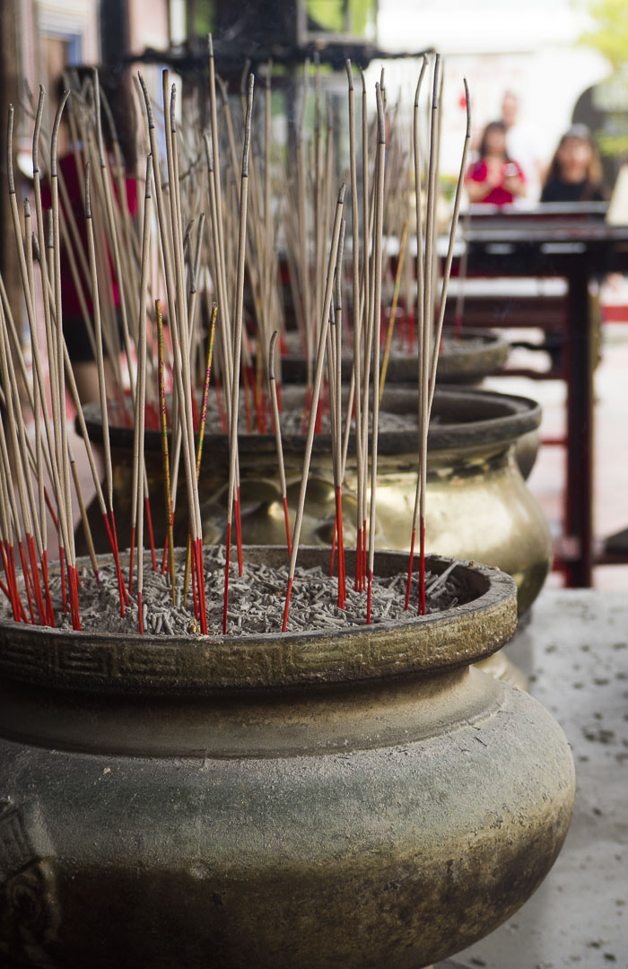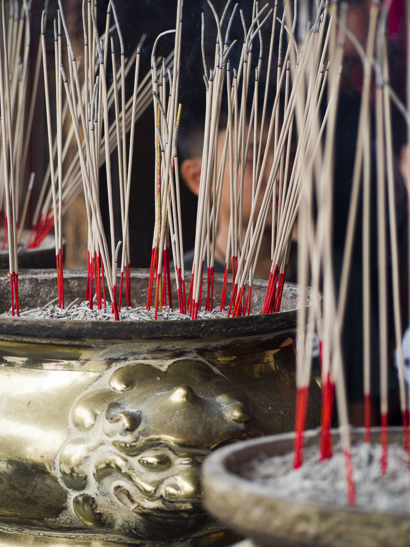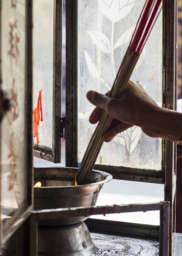 Malgré la foule, c’est un lieu où l’on se sent bien. J’aime beaucoup visiter les temples en Asie, l’atmosphère y est agréable et tout le monde est le bienvenu. Les bougies, les offrandes de fleurs, l’odeur de l’encens contribuent à créer une atmosphère sereine.