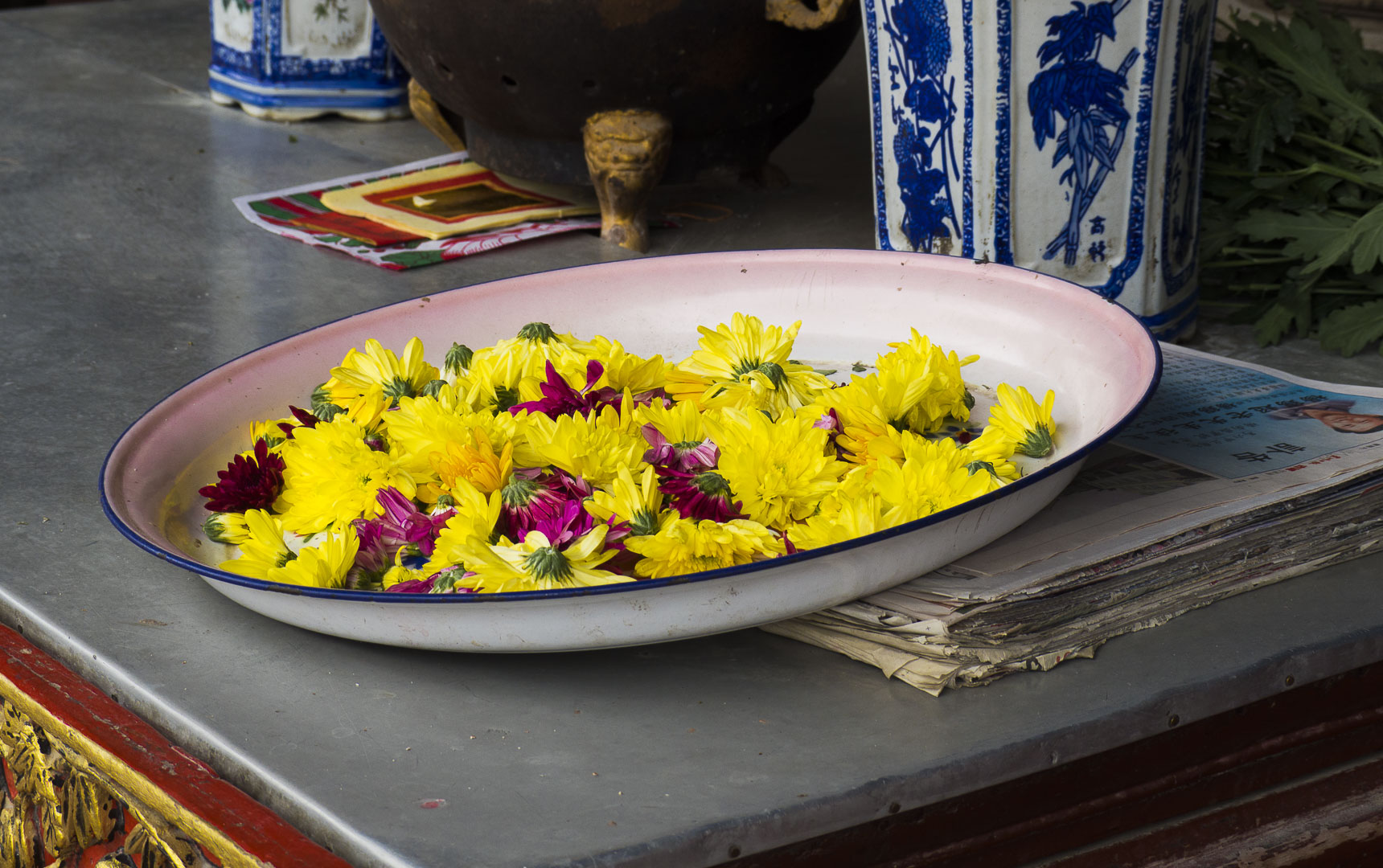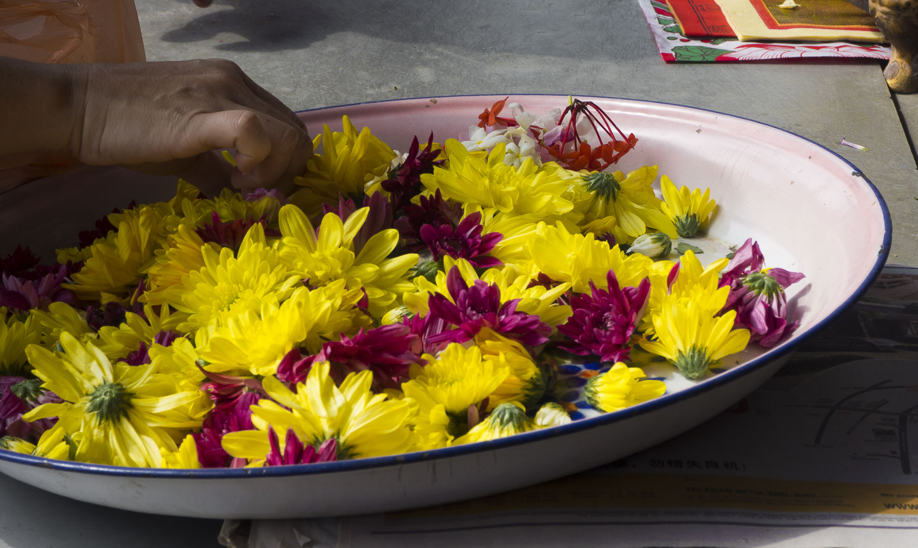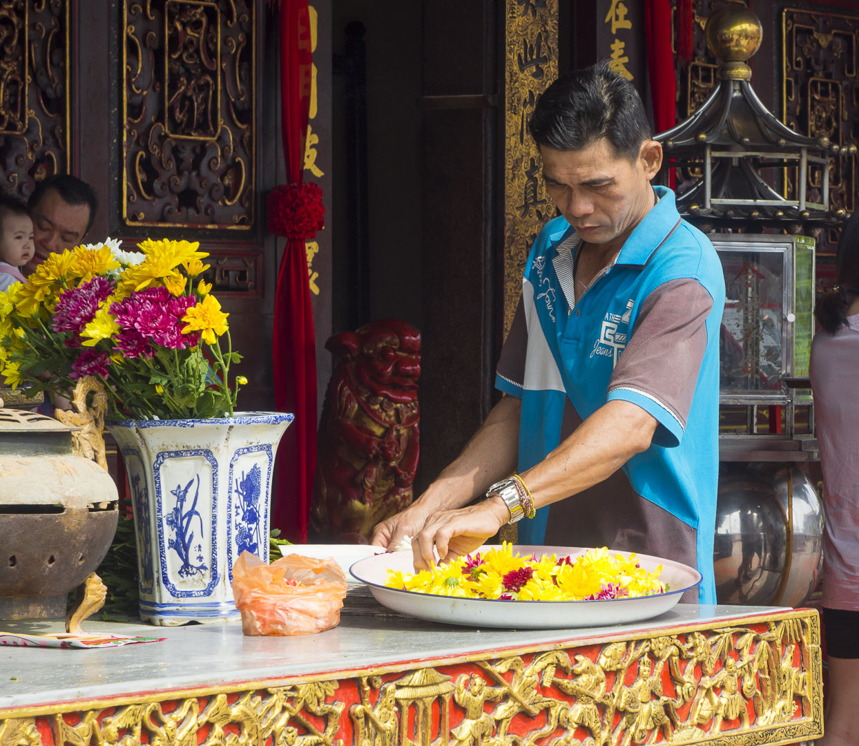 Malgré la foule, c’est un lieu où l’on se sent bien. J’aime beaucoup visiter les temples en Asie, l’atmosphère y est agréable et tout le monde est le bienvenu. Les bougies, les offrandes de fleurs, l’odeur de l’encens contribuent à créer une atmosphère sereine.