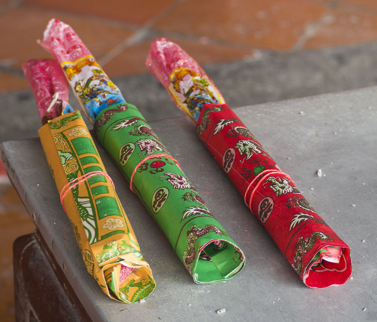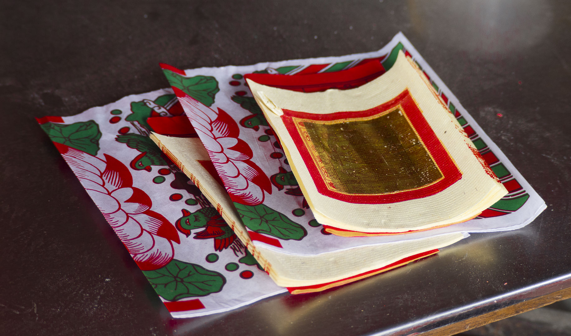Les Chinois pensent que si l’on brûle de l’argent en offrande aux morts, ces derniers le recevront et profiteront d’une vie heureuse et prospère dans l’au-delà. Evidemment ils ne brûlent pas de vrais billets mais remplacent ceux-ci par de l’argent fantôme. Parfois, ces faux billets ressemblent à des billets de Monopoly mais il arrive aussi qu’ils soient plutôt jolis comme ceux-ci.