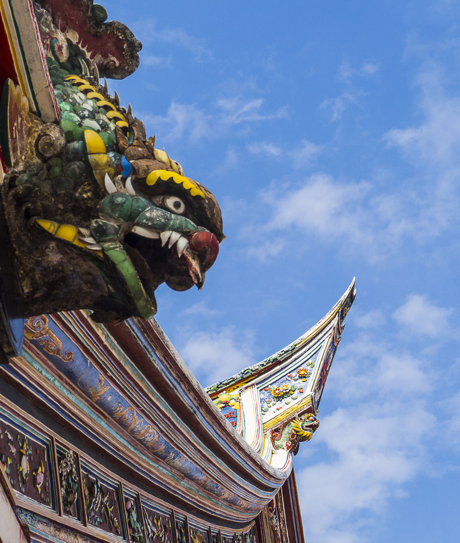 Mais venons en à l’objet de ce billet, le très beau temple bouddhiste/taoiste/confucianiste (oui oui, tout ça à la fois !) Cheng Hoon Teng à Malacca, aussi appelé Temple of Green Cloud. Construit au 17ème siècle, c’est le plus ancien temple de Malaisie. Il est situé au 25, Jalan Tokong qu’on appelle aussi Harmony Street car une mosquée et un temple hindou s’y trouvent également.