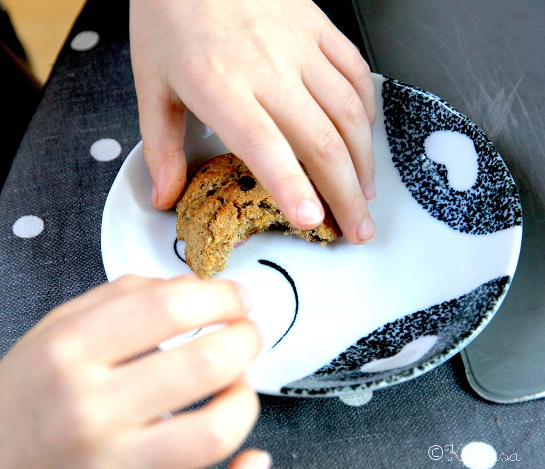 Voilà, voilà. Alors à la maison, on fait attention. Canaillou prend un complément alimentaire pour renforcer sa flore intestinale, ça marche très bien. Et en un an j’ai beaucoup appris, beaucoup testé, tâtonné avec pas mal de ratés. Ca me fait parfois de la peine de me dire que mon fils n’a pas toujours l’air d’avoir beaucoup de plaisir à manger… Car on a beau dire, cuisiner sans gluten, sans oeufs et sans produits laitiers, ce n’est pas facile et j’ai l’impression de donner beaucoup d’importance au « sans ». Alors quand je teste une recette et que Canaillou aime, ça me donne vraiment envie de continuer.