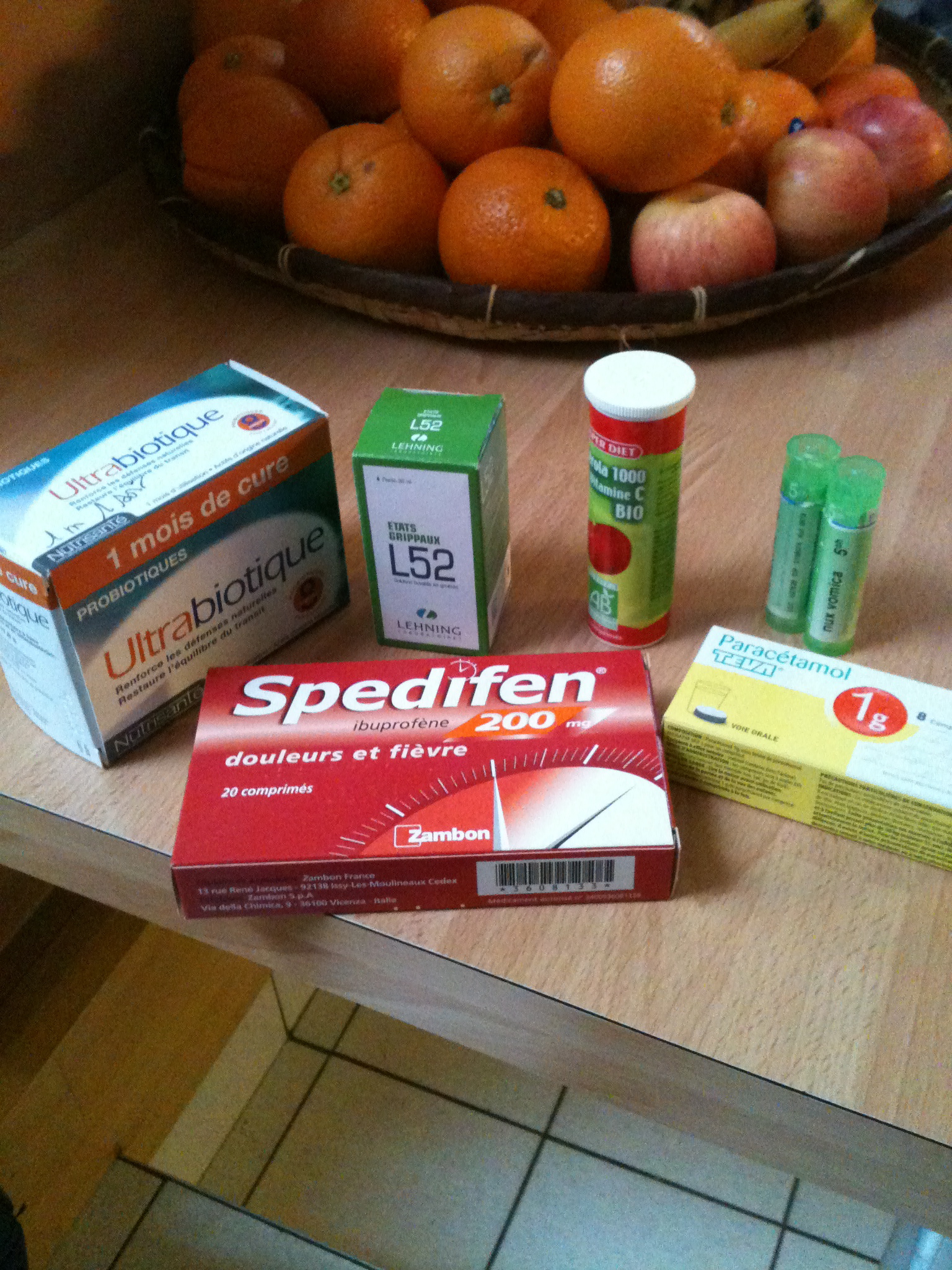 Heureusement mon mari est un peu moins malade que moi et s’occupe de l’intendance. Bon, je retourne sur mon canapé et je vais voir le médecin demain si ça ne va pas mieux !