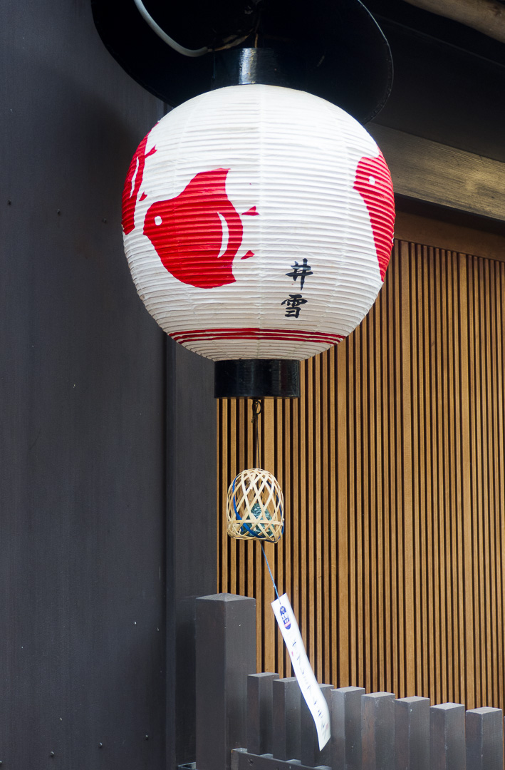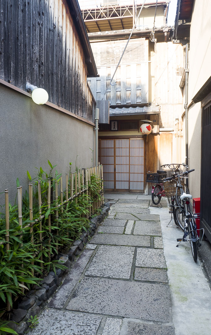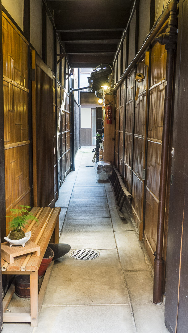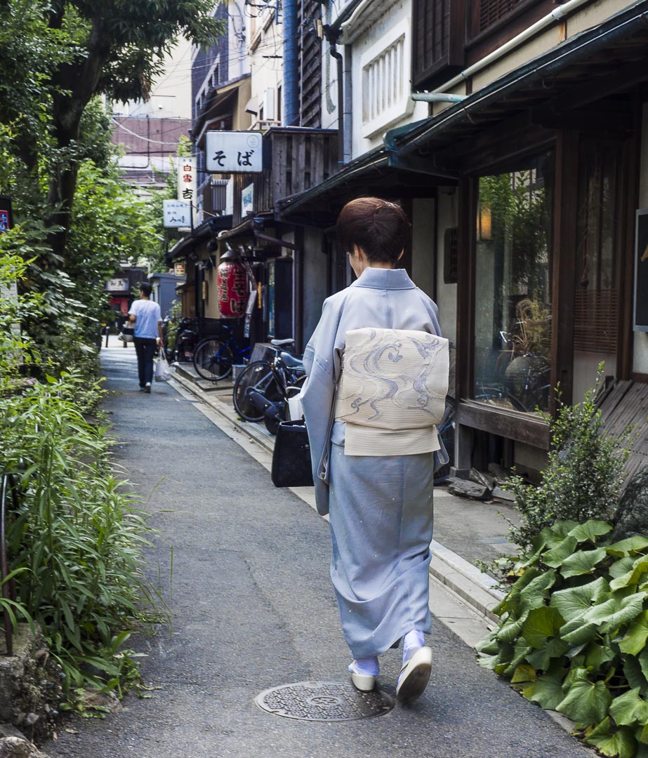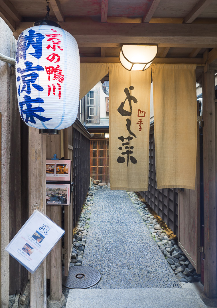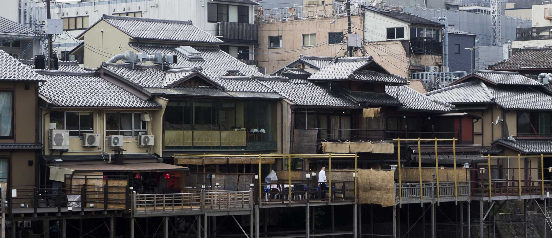 Ici, les ruelles sont étroites, les maisons en bois abritant derrière leurs façades des maisons de thé ou des restaurants protégés des curieux par des stores en bambou ou des noren, ces rideaux japonais fendus.