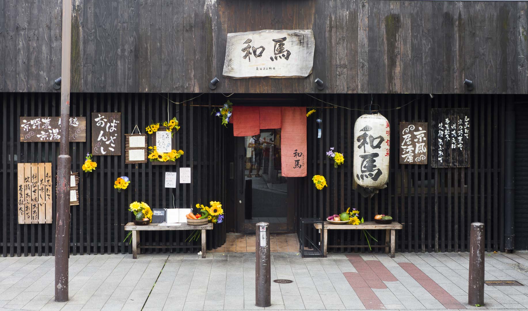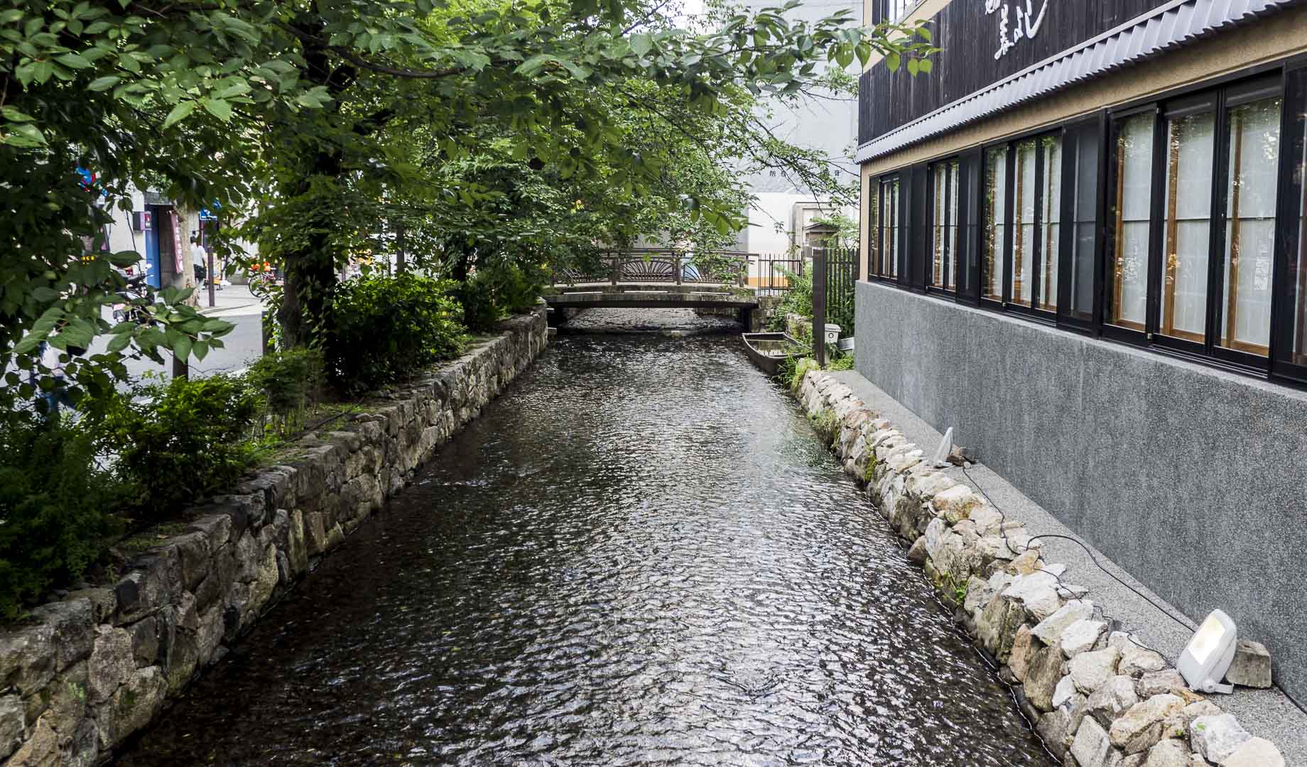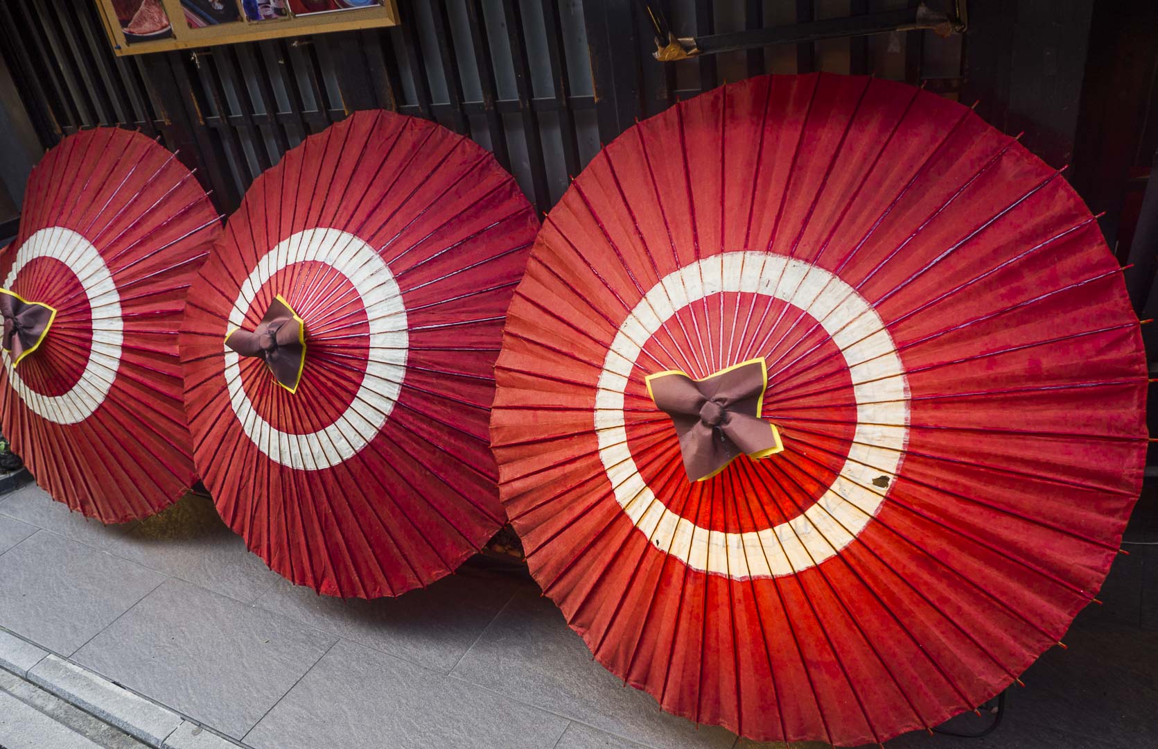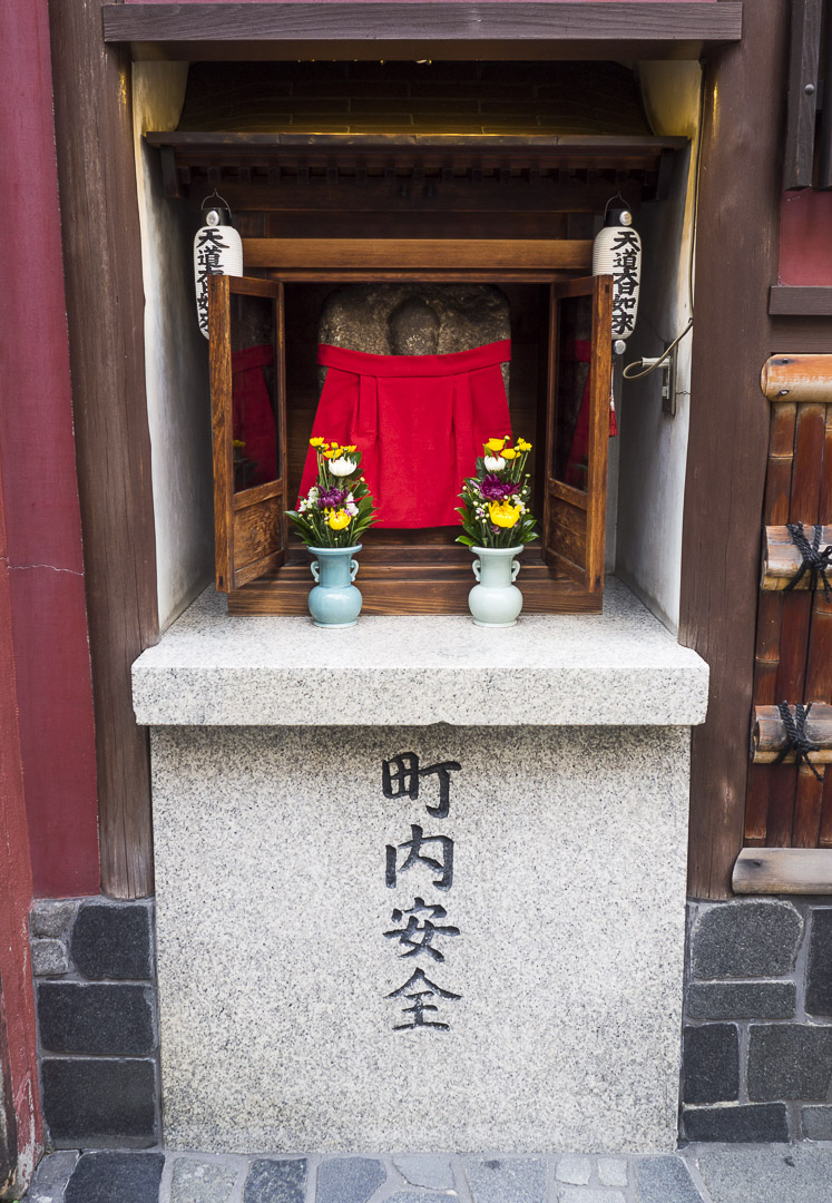 Ici, les ruelles sont étroites, les maisons en bois abritant derrière leurs façades des maisons de thé ou des restaurants protégés des curieux par des stores en bambou ou des noren, ces rideaux japonais fendus.