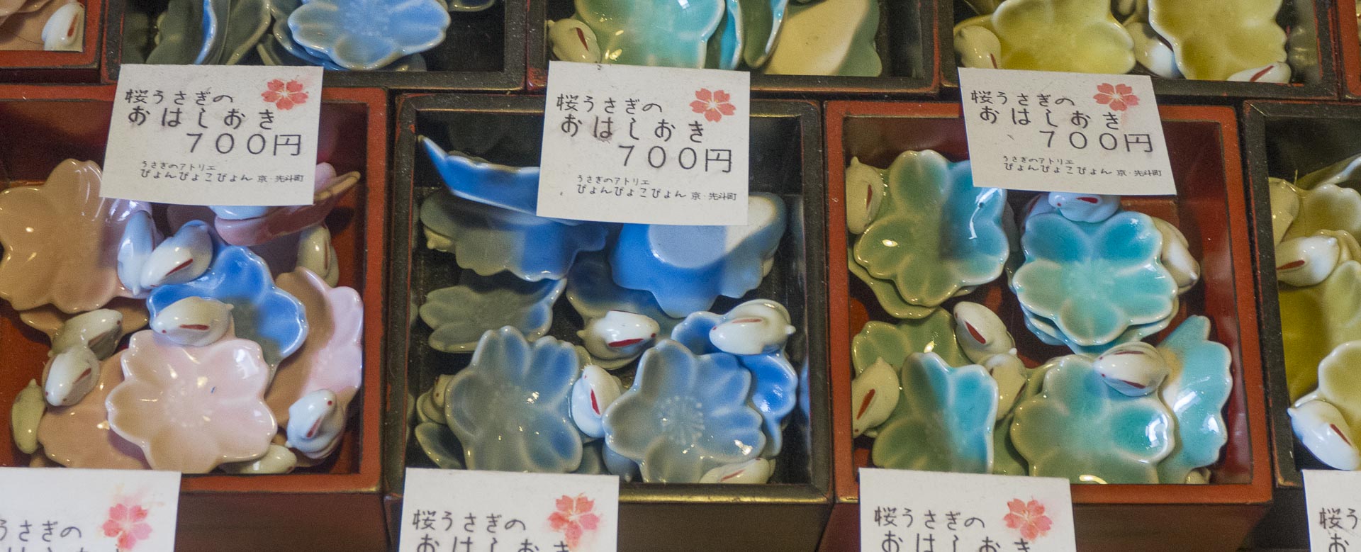 Une petite boutique vendait d’adorables lapins en céramique, ainsi que de jolis repose-baguettes en forme de fleurs de cerisier… Je n’ai pas craqué car c’était un peu cher !