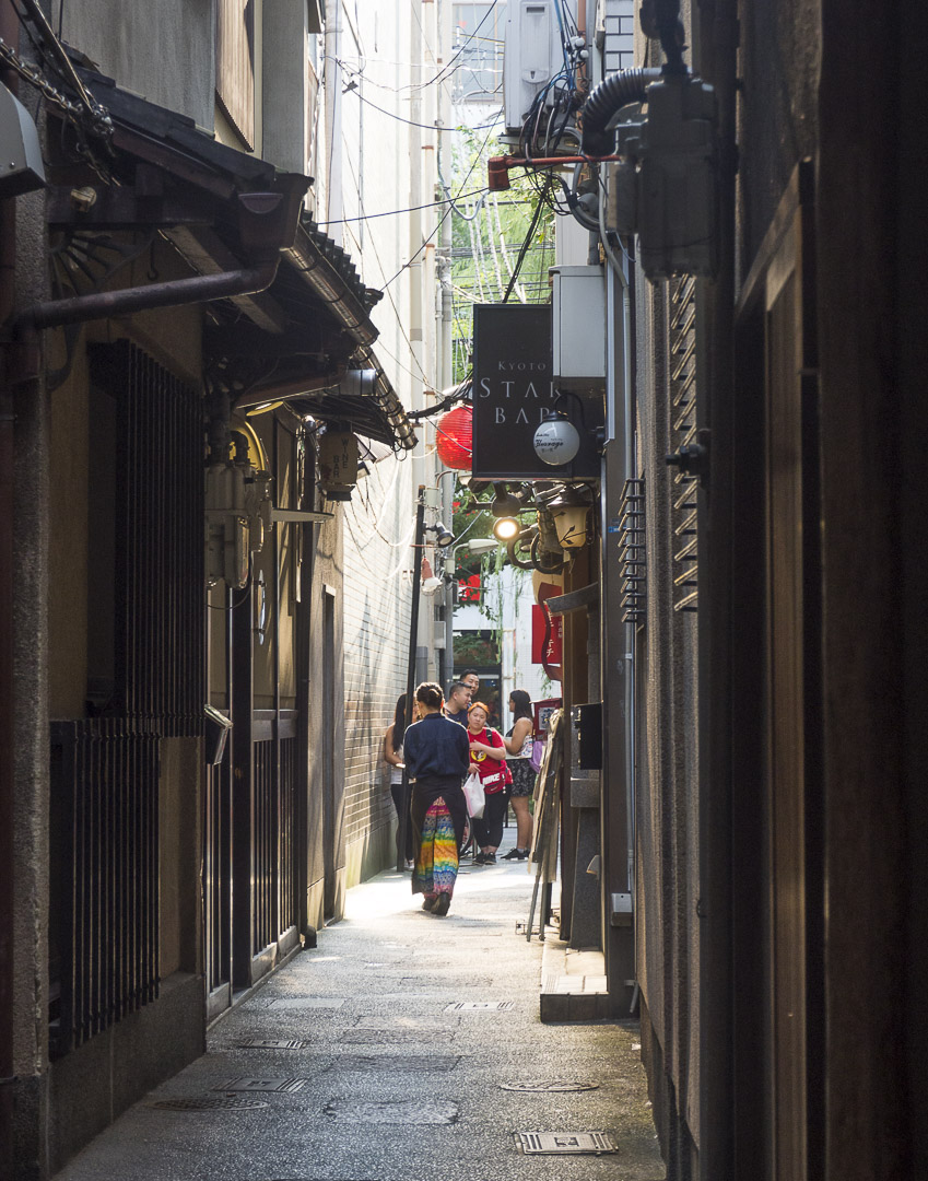 Un peu plus loin on arrive dans le quartier traditionnel de Gion, avec ses ruelles et ses allées étroites se dérobant au regard.