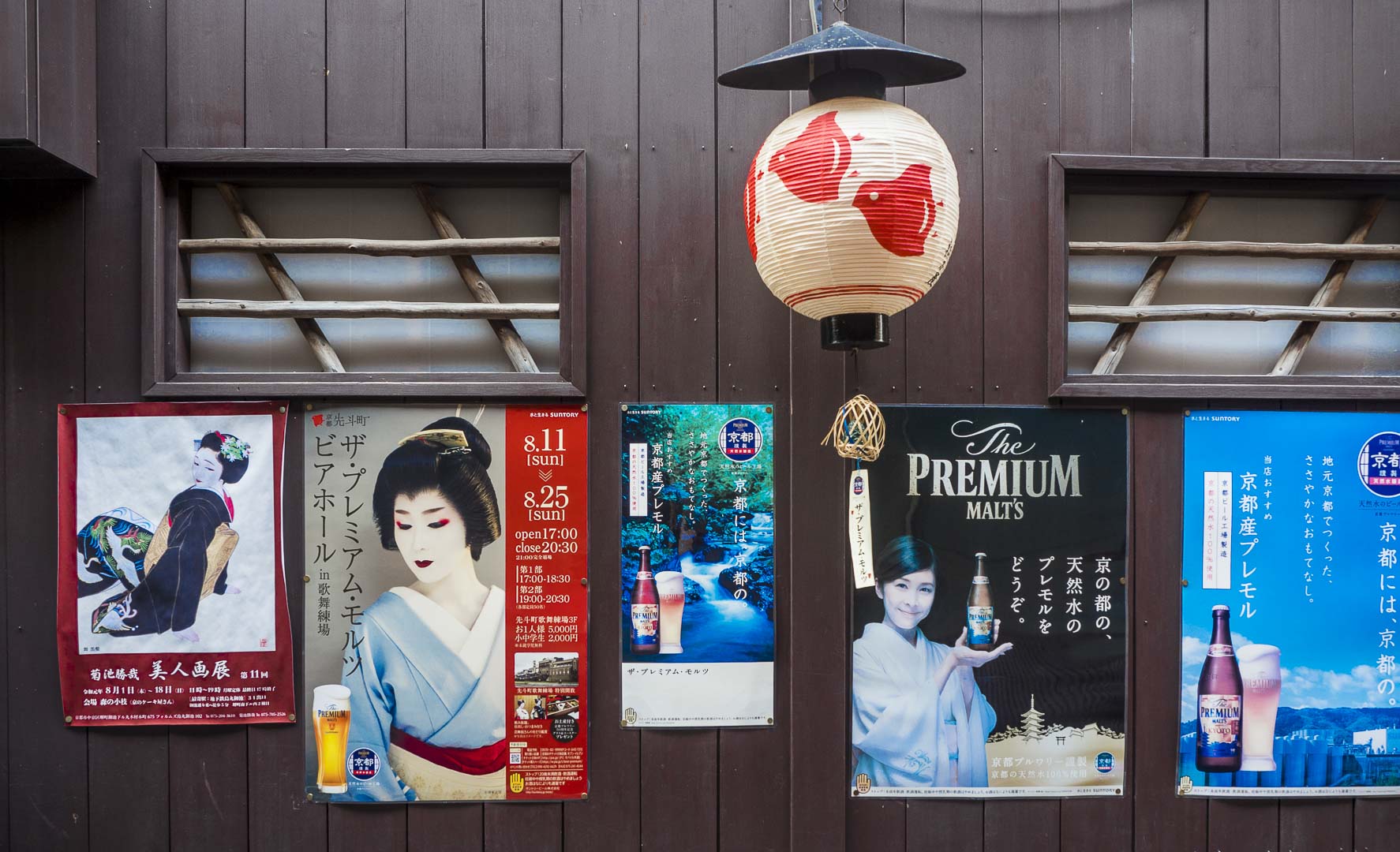 On peut observer ici et là une geisha se rendant au travail. Des affiches présentent des spectacles qui font rêver mais qui sont complets des semaines à l’avance, il faudra y penser pour une autre fois…