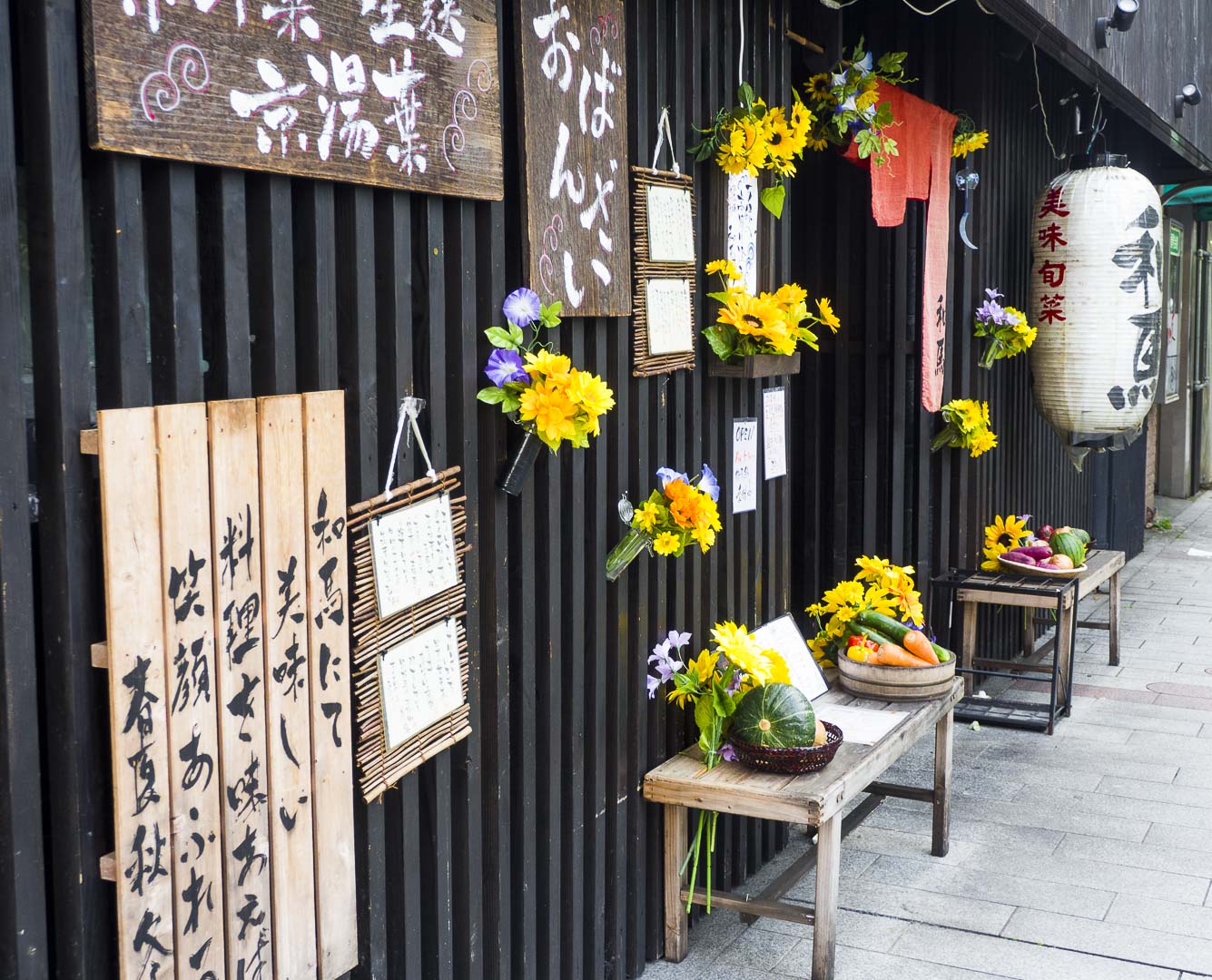 Certaines maisons ou boutiques sont bien fleuries, j’ai remarqué que les Japonais adorent les tournesols !