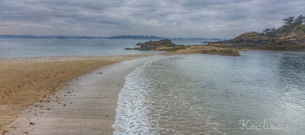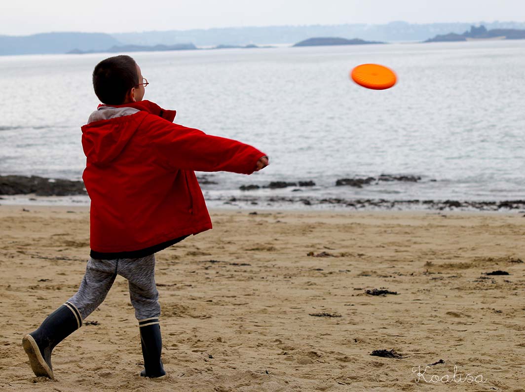Le week-end dernier nous sommes allés faire un tour à la plage. Plutôt que d’aller à la grande plage de Lancieux, nous nous sommes dirigés vers la petite plage de l’Islet, entièrement déserte en ce début d’après-midi. J’adore avoir la plage pour nous trois !