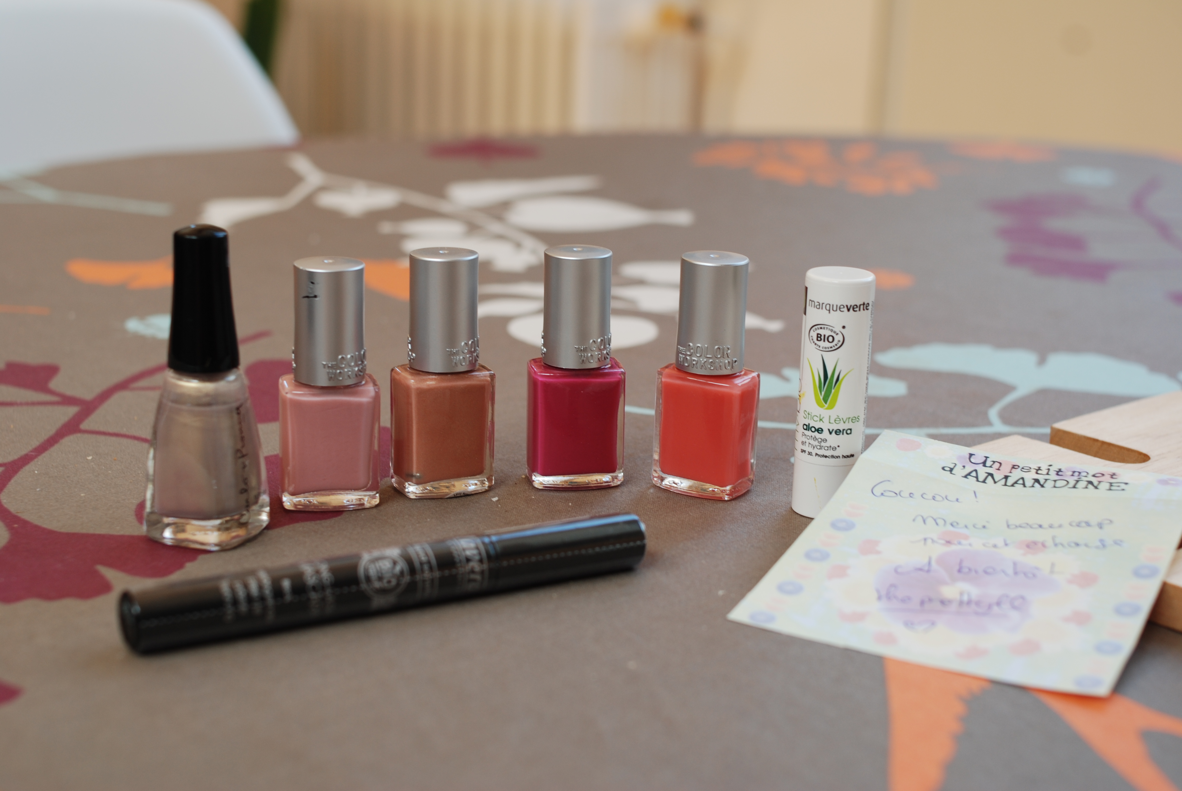 Avec un petit mot gentil en plus ! Ou comment les blogueuses sont formidables… On a décidé de renouveler l’expérience si on reçoit à nouveau des box avec des produits qu’on n’utilise pas.