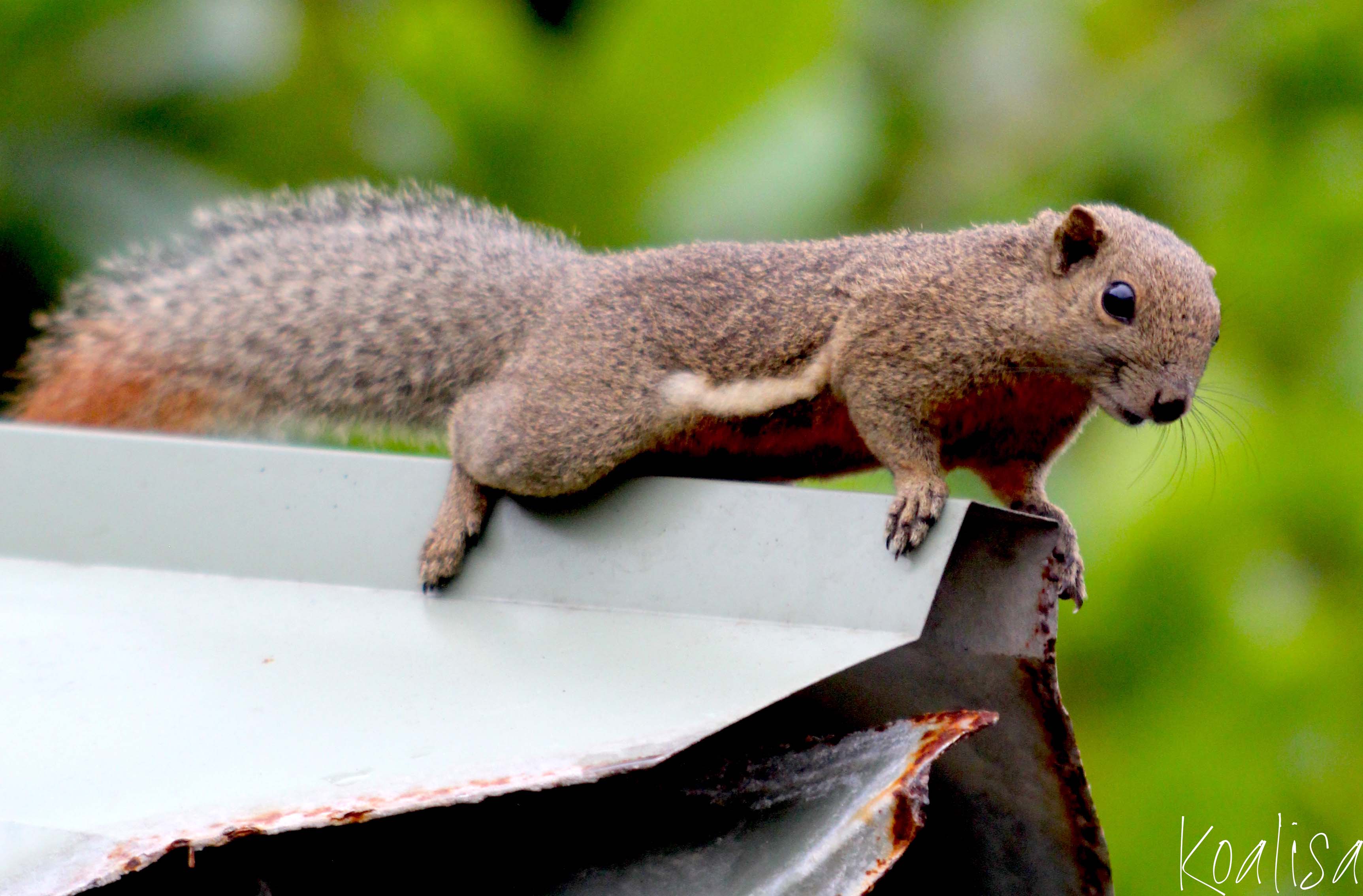 Pourtant aujourd’hui j’ai eu envie de vous montrer de jolis écureuils rencontrés sur l’île de Redang. L’hôtel où nous séjournions (le Taaras) était entouré de végétation et nous avons vu pas mal d’animaux, et notamment ces petits écureuils dits « plantain » (plantain squirrels en anglais ) aussi appelés écureuils orientaux ou tricolores : ils ont la queue et le ventre roux ainsi que des rayures marron sur le ventre. On les trouve en Malaisie, à Singapour et en Indonésie.