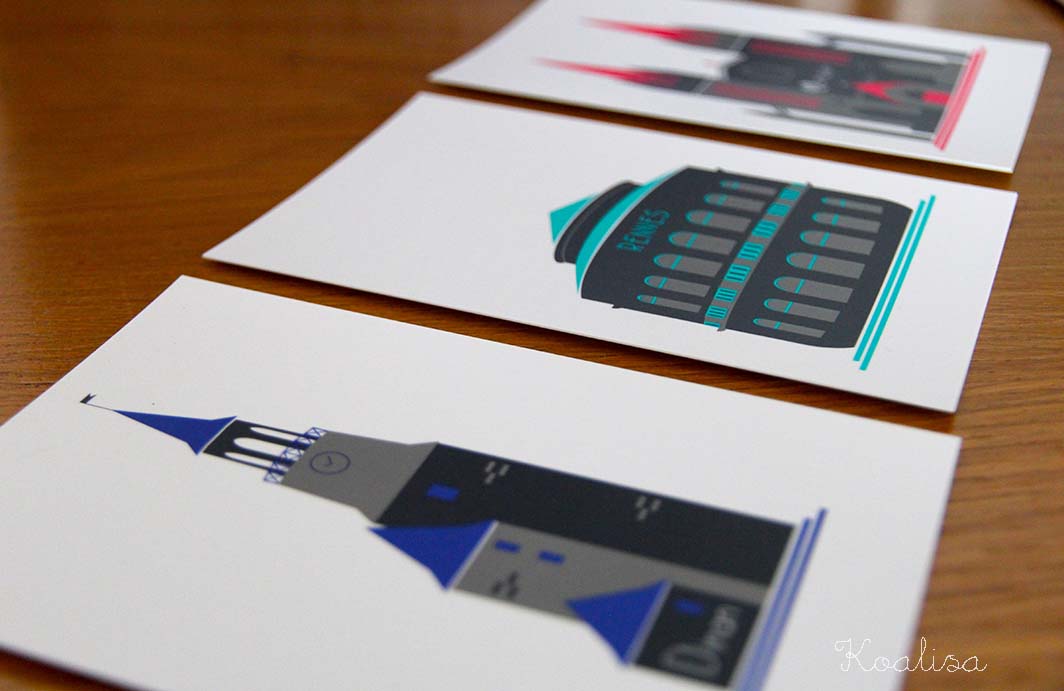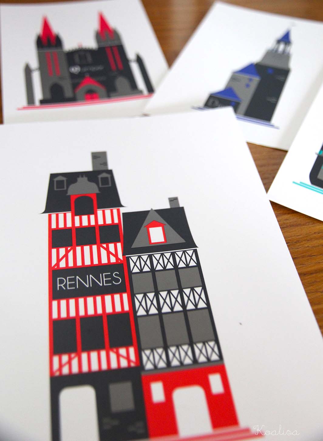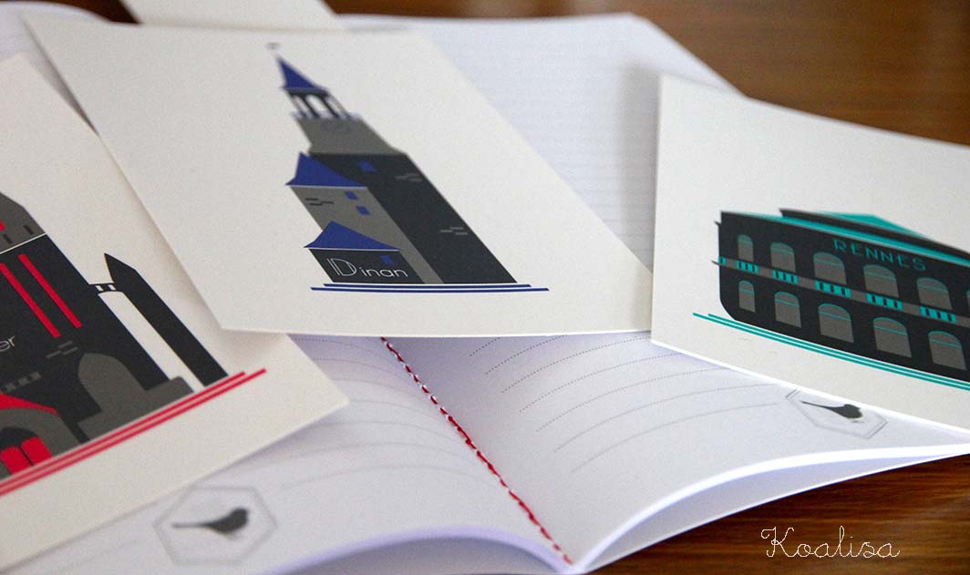 Les villes de Rennes, Dinard, Dinan, Lorient, Quimper, Saint-Malo et Vannes y sont joliment représentées de manière très contemporaine. Il existe également des marque-pages et un très beau tote-bag.