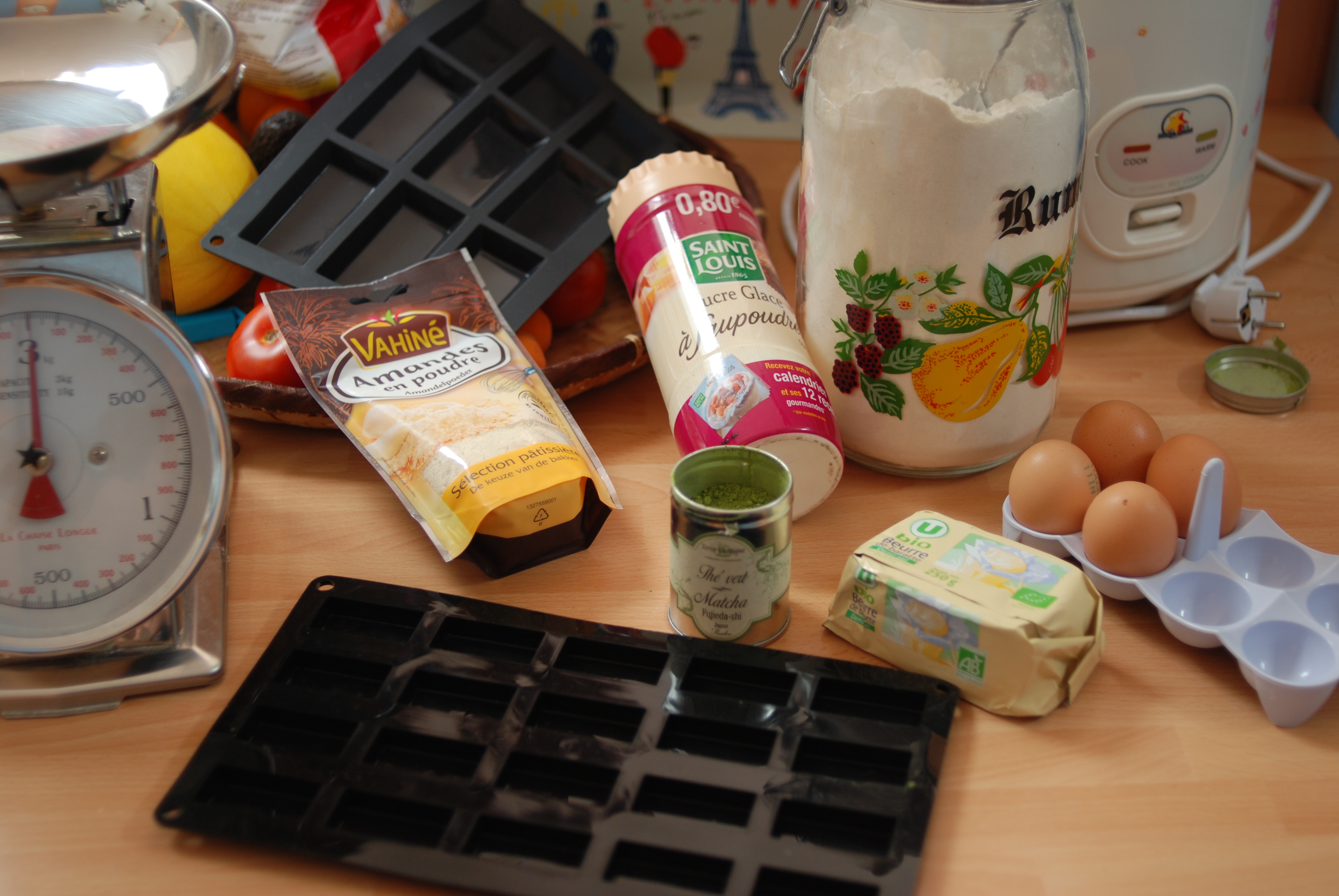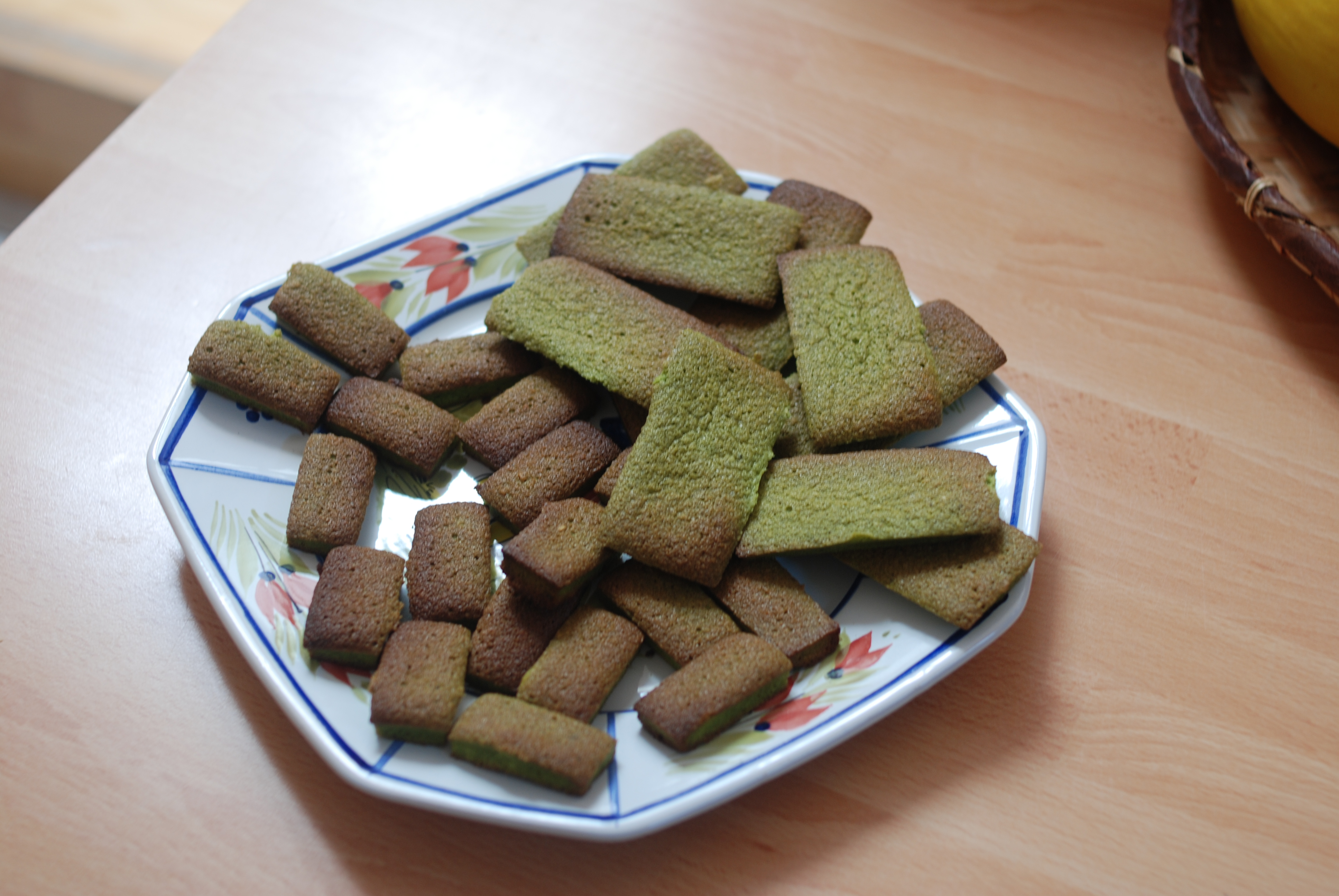 Mon amie Sylvie est venue prendre un thé à la maison l’autre jour et comme elle sait que je suis gourmande, elle a apporté ceci (j’ai des super copines^^): des mini-financiers au thé matcha