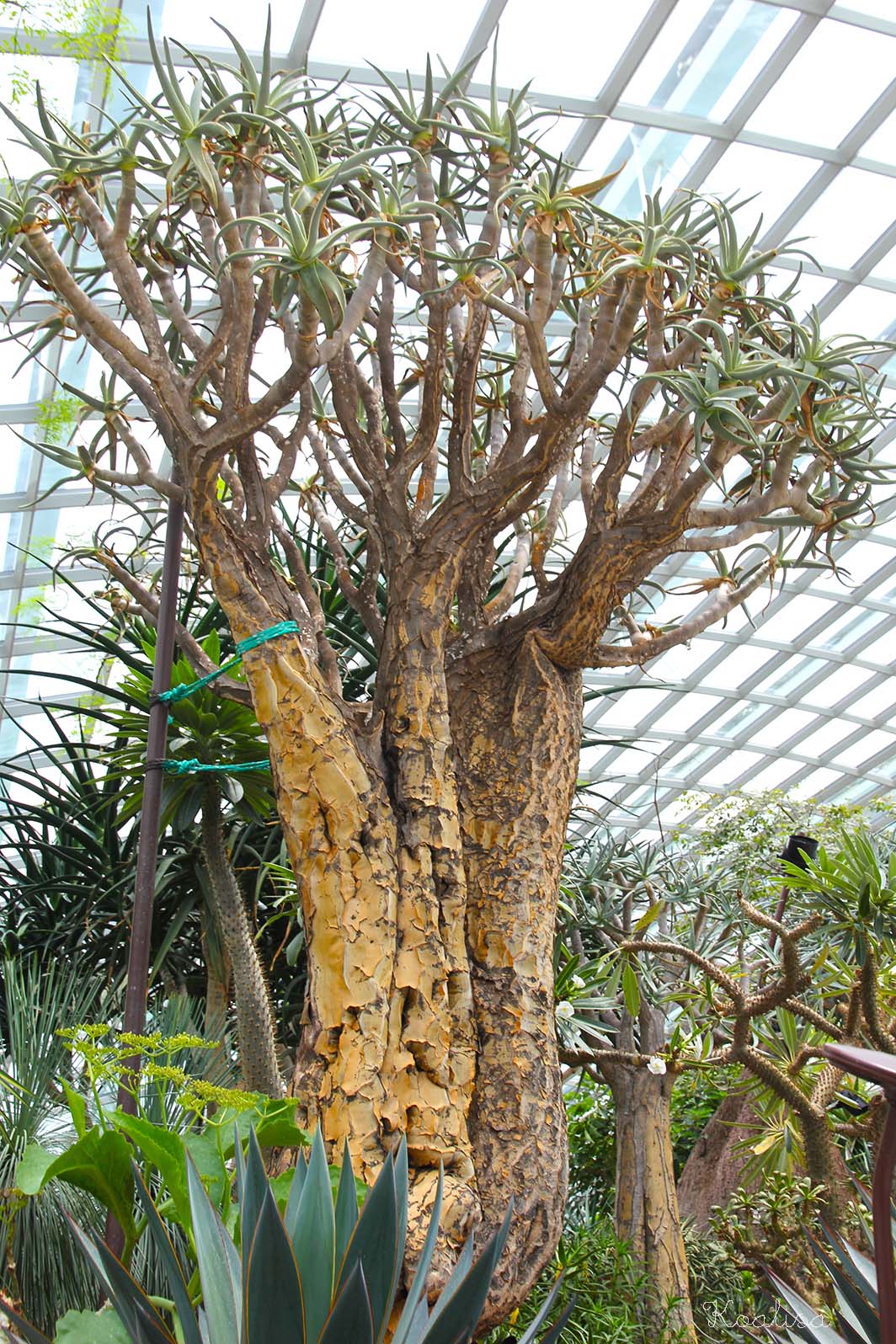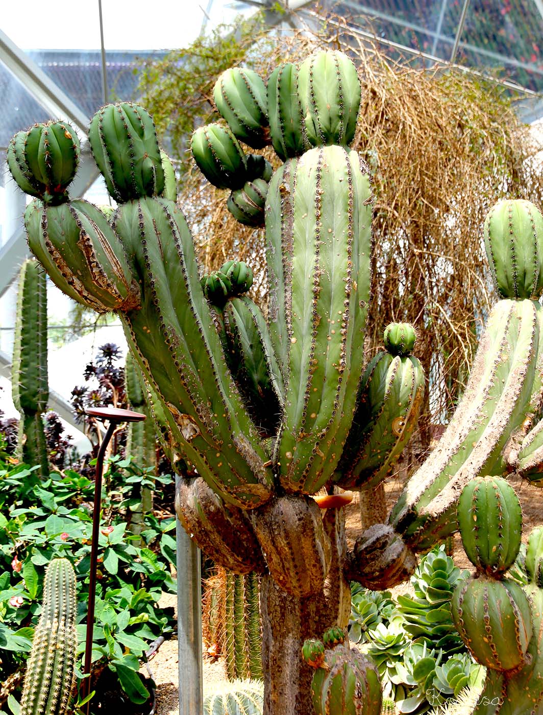 Dans une autre partie de la serre règne un climat plus sec, propice à la culture des succulentes, cactus, arbres bouteilles et baobabs.