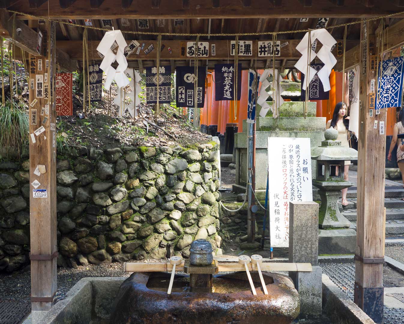 Même s’il faisait très chaud, le fait d’être en forêt et donc à l’ombre, rend la promenade très agréable. Des petits temples jalonnent le parcours, avec des fontaines pour le Temizuya, rituel shinto de purification par l’eau . Je vous préviens, c’est un peu compliqué !