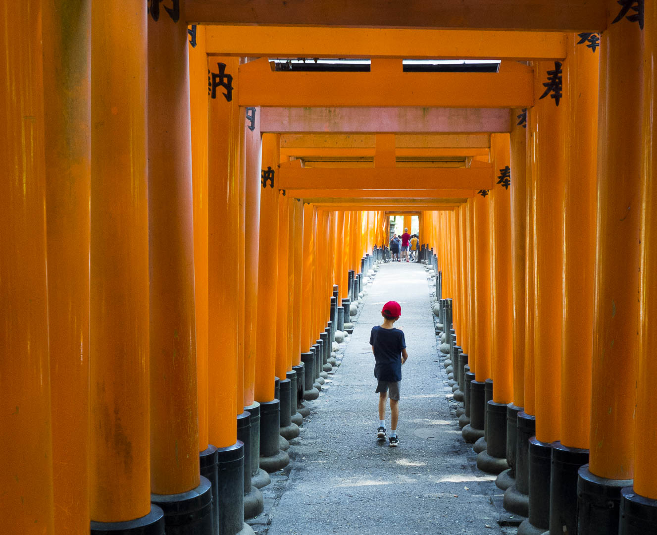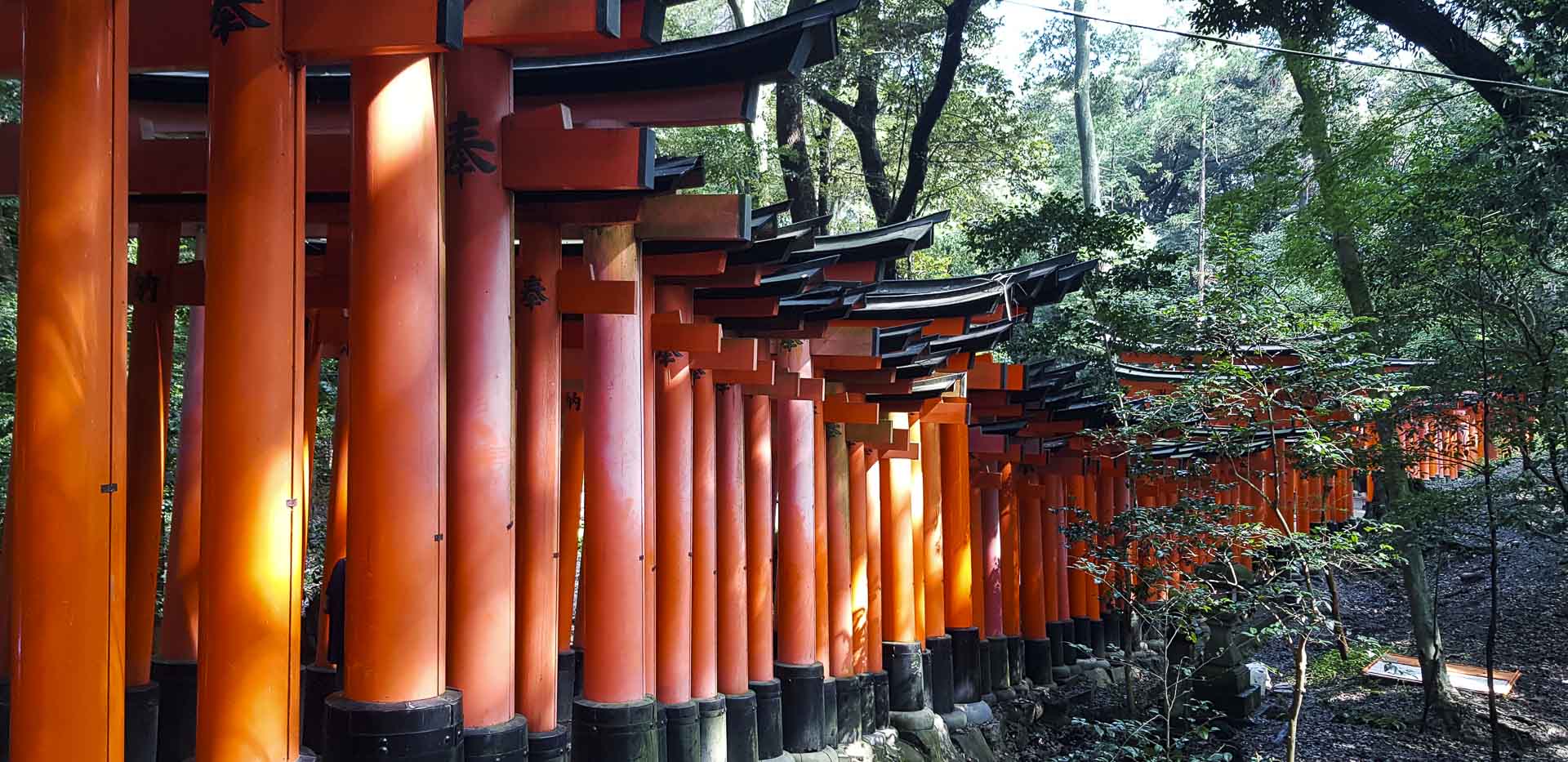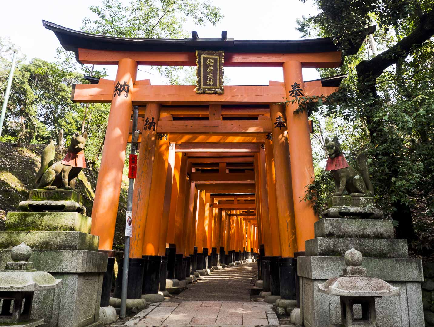 On repart au Japon, avec une visite que j’attendais avec impatience : la découverte du sanctuaire shinto Fushimi Inari, au sud de Kyoto. Inari est le dieu shinto du riz et les renards (Kitsune) sont ses messagers. Les terres du sanctuaire se situent dans la forêt du mont sacré Inari, qui culmine à 233 mètres. Ce lieu sacré est très ancien, il date d’avant l’an 794.