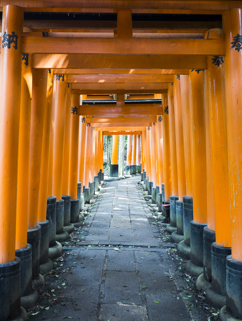 Une fois passée l’entrée, on commence à voir les torii, ces portiques rouges qui encadrent l’ascension du mont Inari. Il y en a 10 000 !