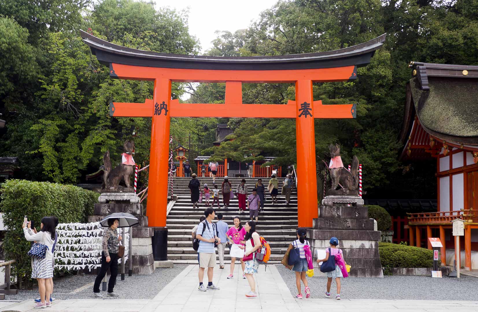 Fushimi Inari est donc un lieu hautement touristique, nous avons pu le constater dès notre arrivée vers 8 h du matin. Malgré l’heure matinale, il y avait déjà foule.