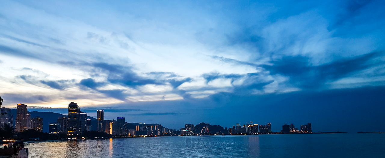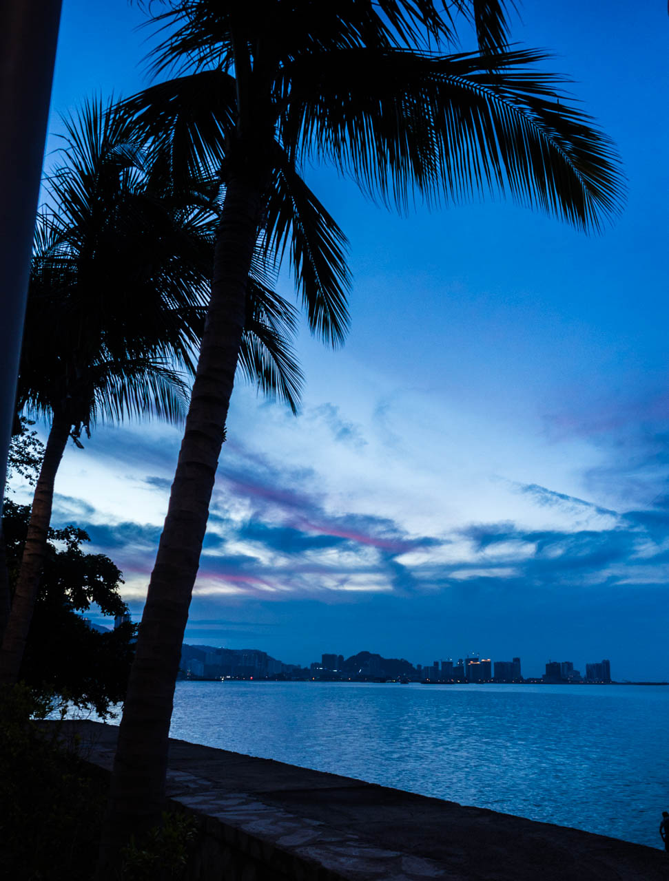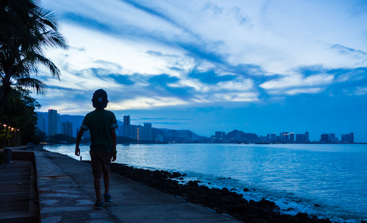 Ce premier soir, nous sommes allés voir la mer et avons fait une petite balade au bord de l’eau pour profiter d’un beau coucher de soleil. Vous pouvez voir que les gratte-ciels ont fleuri sur l’île.