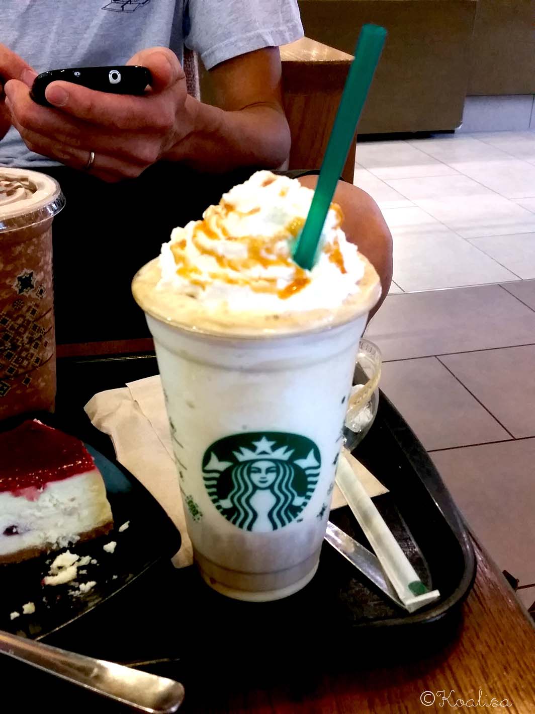 profiter du wifi et de la clim ( il fait 35 degrés à l’extérieur) chez Starbucks en dégustant un macchiato caramel et du cheesecake…