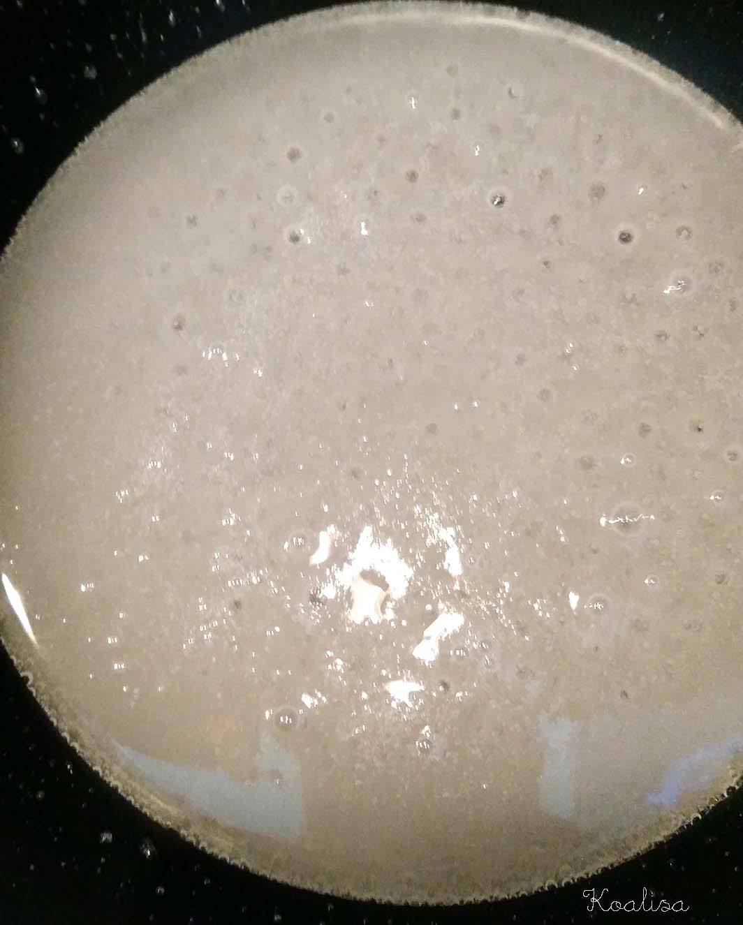 Dans une casserole, diluer le sucre dans l’eau et porter à ébullition jusqu’à ce que de grosses bulles apparaissent :
