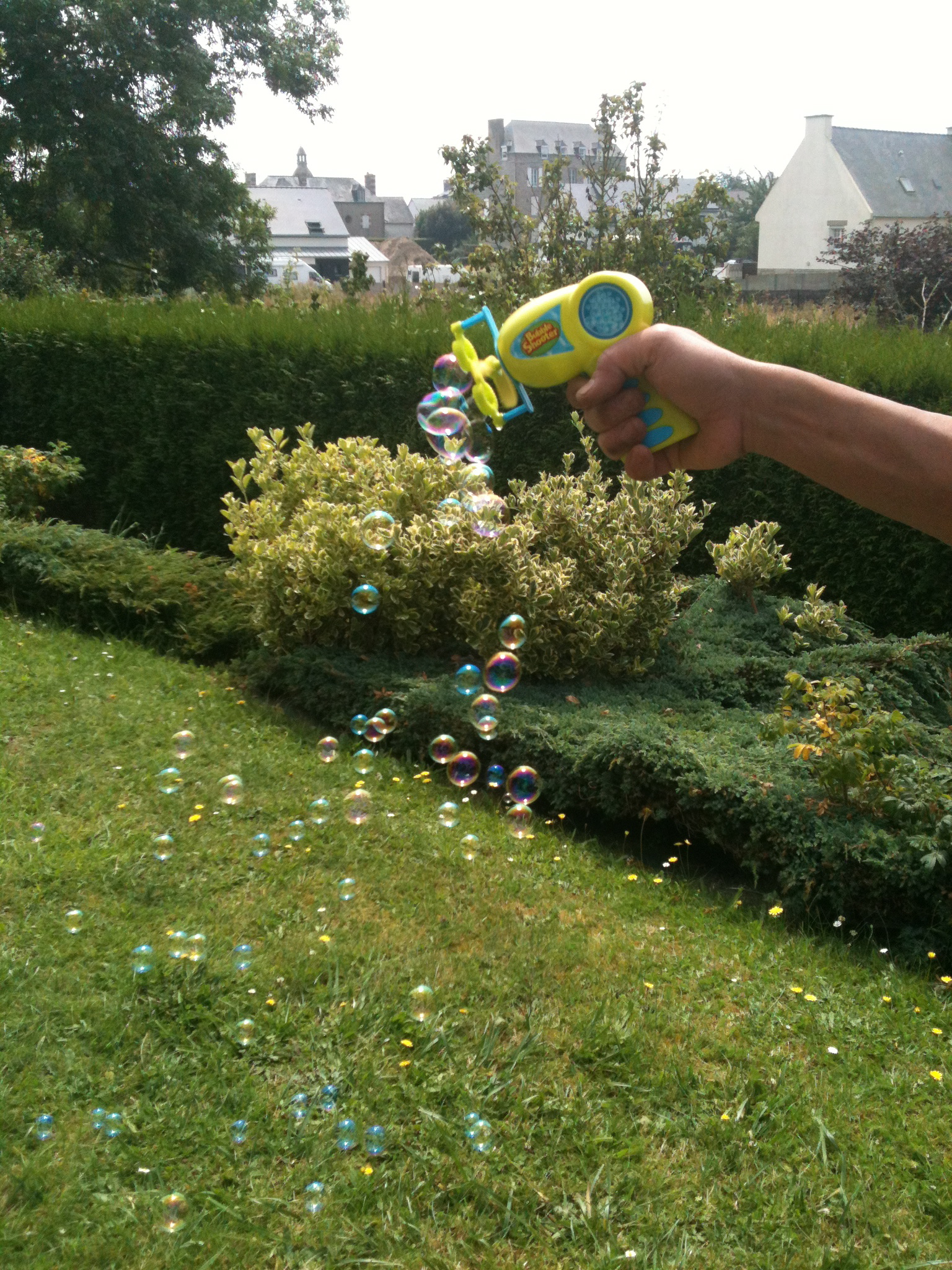 Hé oui, maintenant il existe des pistolets qui font des bulles ! Je vous montre la chose: