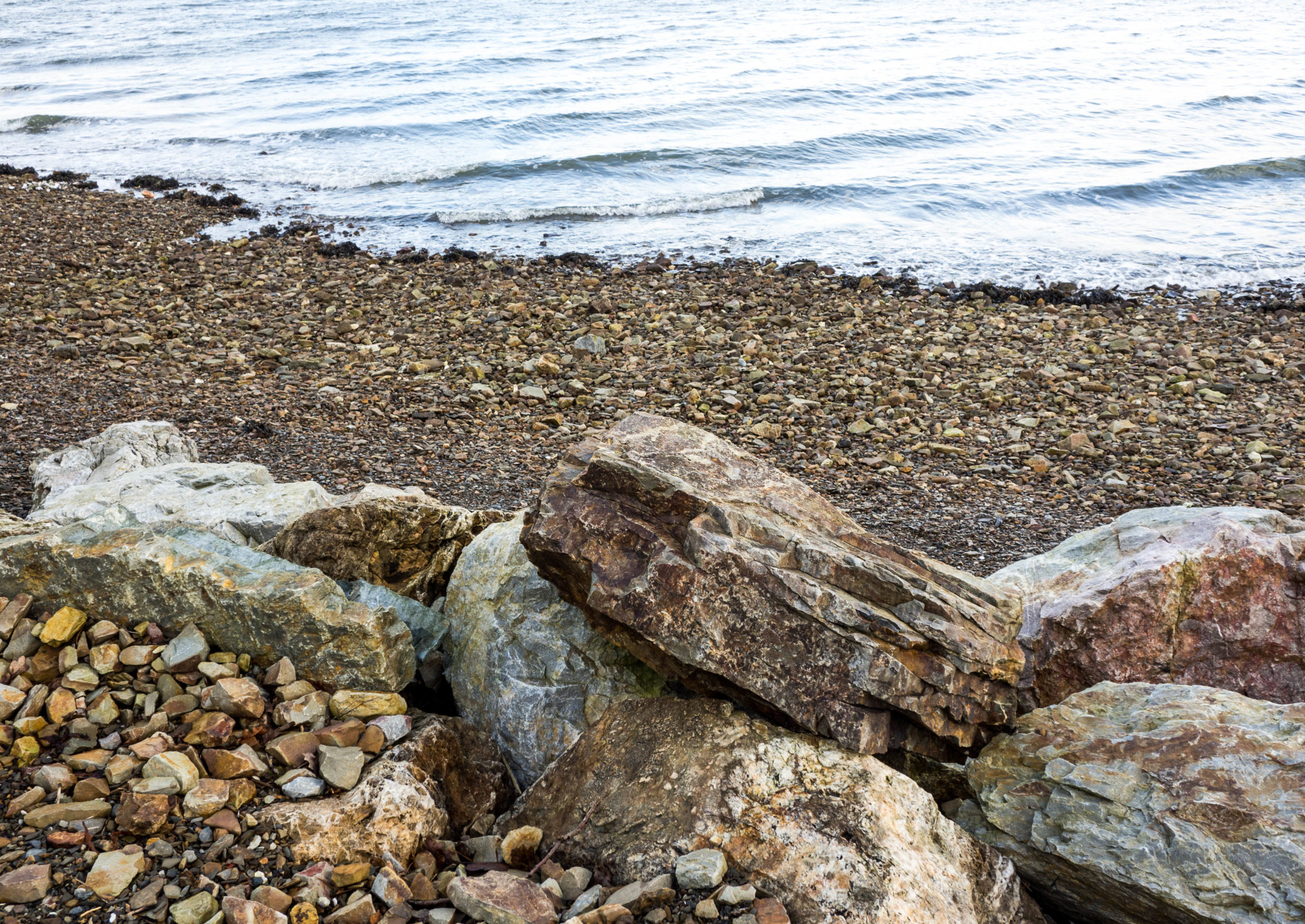 Apparemment nous sommes maintenant sur la commune d’Argol et non plus de Landévennec… Ici aussi, le site date du quaternaire et est constitué de galets de schistes.