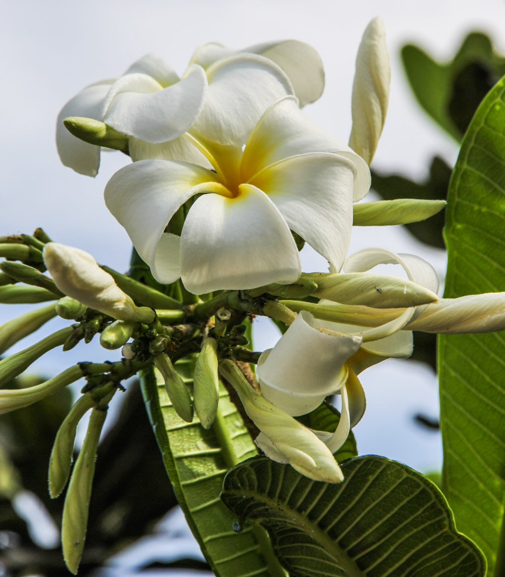 On trouve en Malaisie plusieurs variétés de frangipanier (blanc, jaune ou rose) . Ca sent si bon !