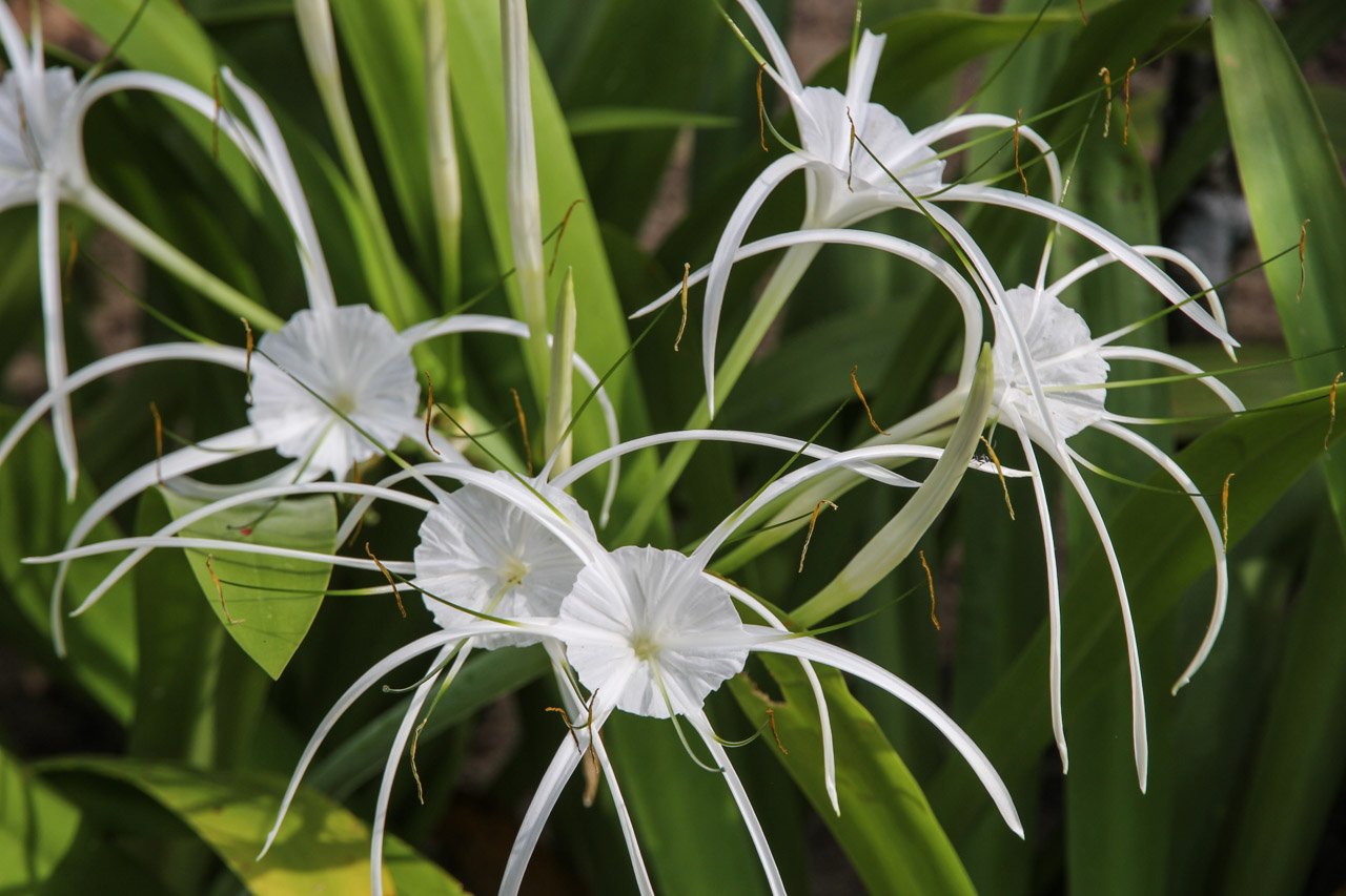 J’y ai vu aussi des lys araignées (spider lilies) aussi appelés lys ouragan (hurricane lilies):
