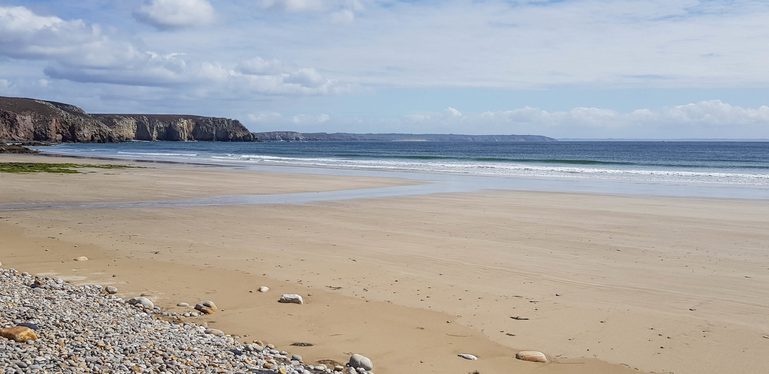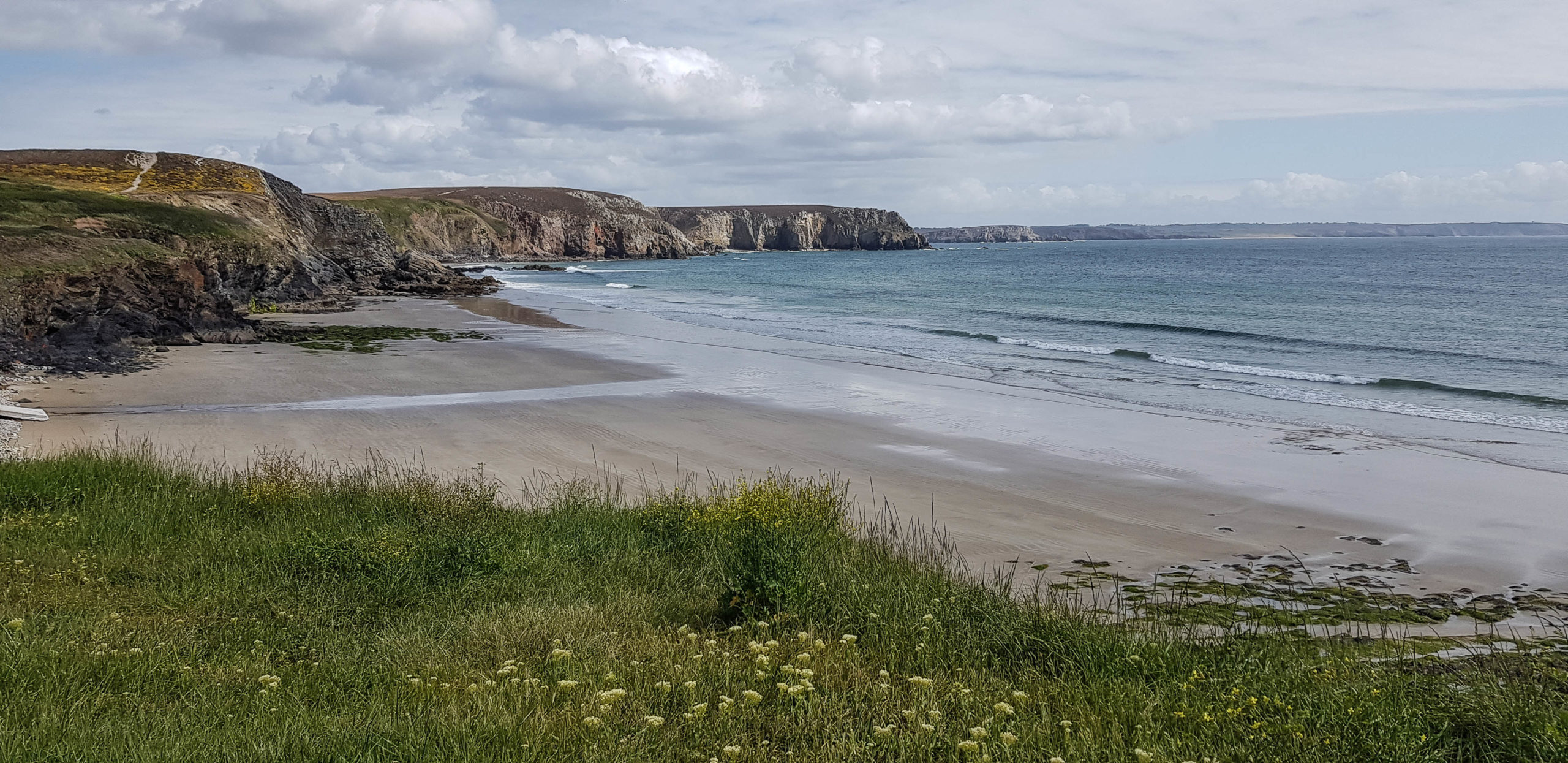 Cette plage située dans l’anse de Pen Air est bien protégée du vent, et j’aurais bien été piquer une tête dans ses eaux bleues… (mais malgré le soleil, la mer devait être encore bien froide !)