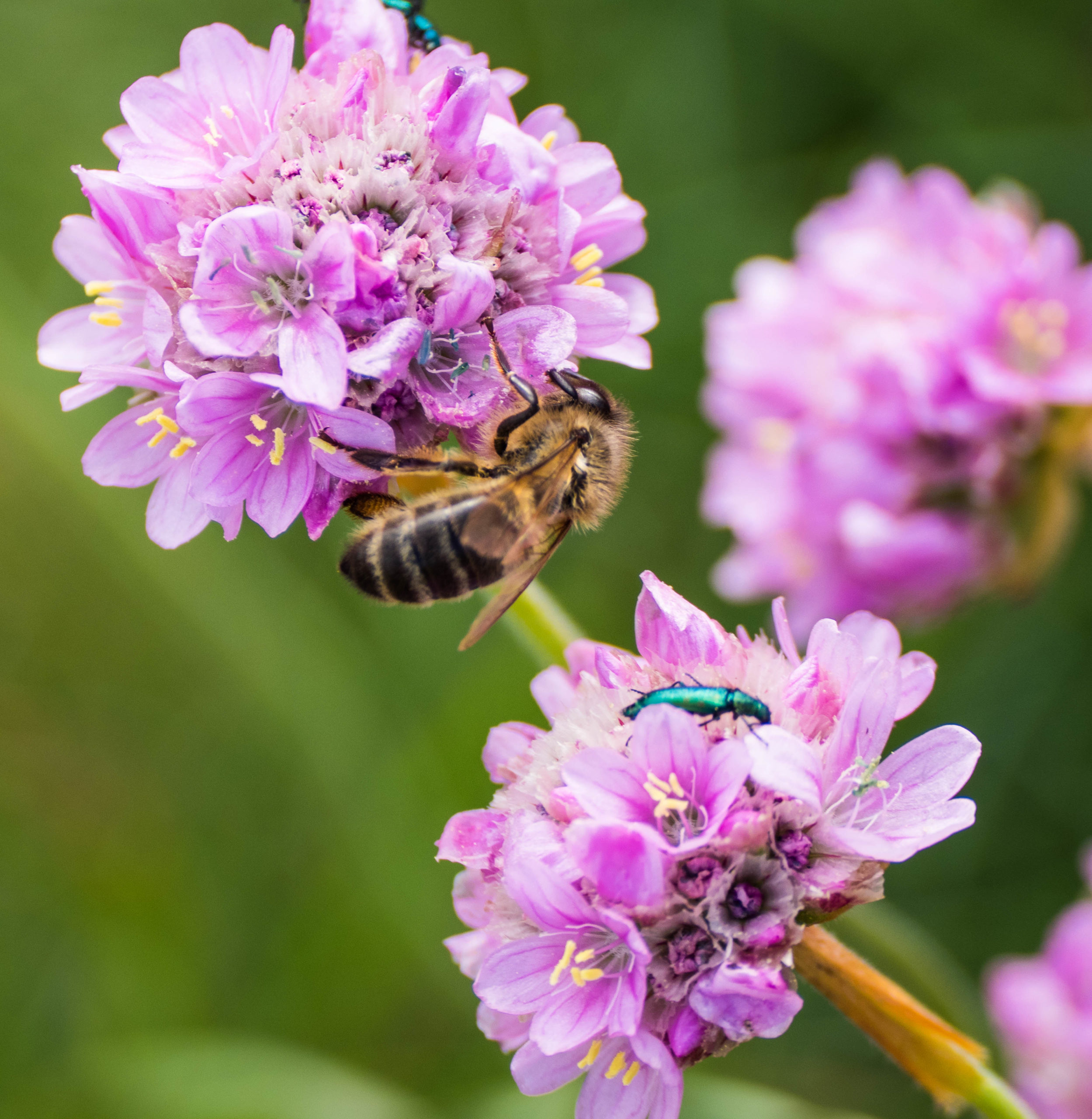On y trouve également les jolies arméries maritimes roses qui attirent les abeilles.