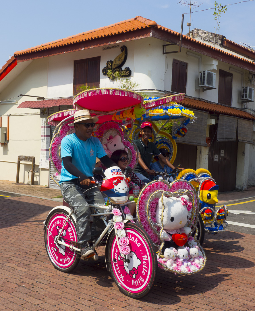 Après avoir fait un peu de shopping, les touristes peuvent se faire promener en tuk-tuk ou trishaw. On les voit arriver de loin avec leur déco haute en couleurs (Hello Kitty, la Reine des Neiges, Pikachu, Spiderman, il n’y a que l’embarras du choix)…Ca n’est pas du meilleur goût mais c’est très bon enfant (et en plus ils ont une sono d’enfer !). Cerise sur le gâteau(ou pas), la nuit, ils sont illuminés ! Et non, je n’ai pas testé…