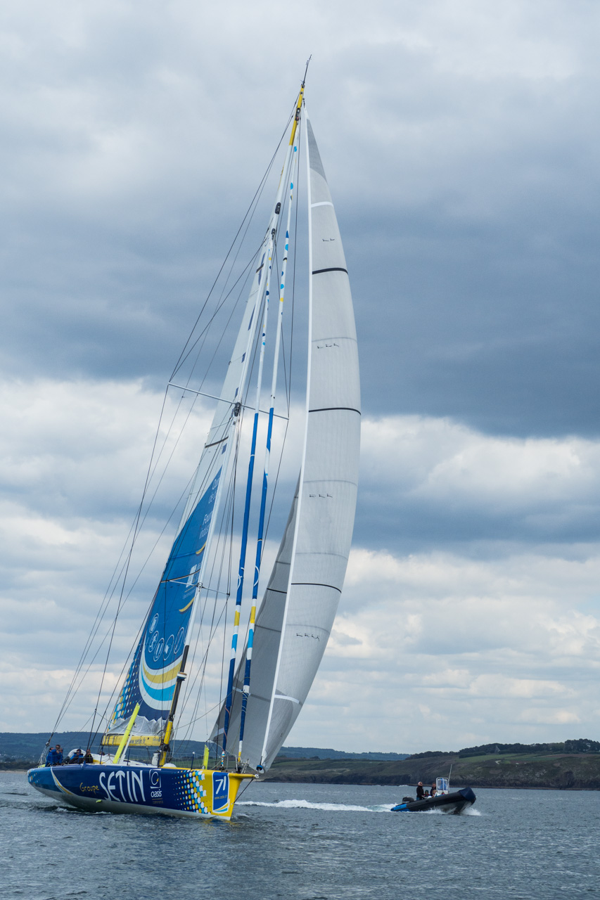 L’après-midi, une balade en mer était prévue pour continuer d’observer la course au coeur de l’action. Le vent avait fini par se lever et de beaux duels ont eu lieu, pour notre plus grand plaisir. Ce fut aussi l’occasion de revoir des bateaux connus tel que Initiatives Coeur, Groupe Setin, Maître Coq, Serenis, Groupe Apicil et d’en découvrir de nouveaux comme Malizia du yacht Club Monaco, ou V&B le nouveau bateau de Maxime Sorel. C’est vraiment extraordinaire de vivre une course en étant aussi près des bateaux.