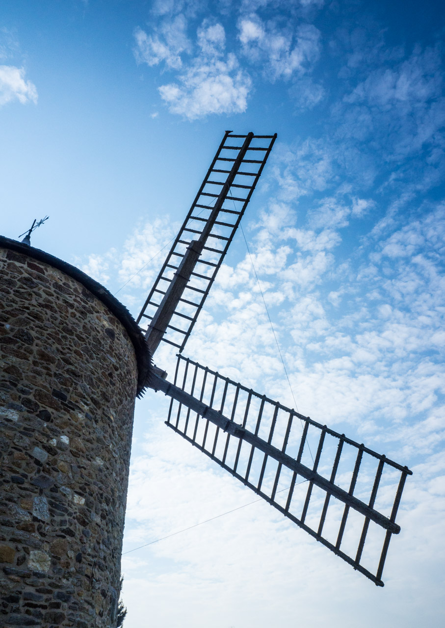 Il est joli ce moulin à vent… Autour de la Baie du Mont Saint Michel, la plupart sont aussi tombés en ruines, quelques rares ont été transformés en habitations (avec moult remaniements).. et il en reste un qui fonctionne tout l’été ! C’est très impressionnant à voir…