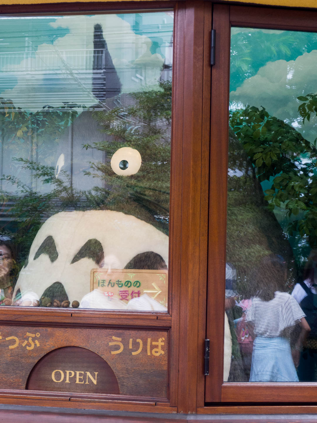 Il nous a déposés au musée juste à l’heure de l’ouverture (10 h), nous…et beaucoup d’autres visiteurs car une fois sur place, il faut faire la queue pour échanger nos tickets papier contre les “vrais” : chaque billet est constitué d’un petit morceau de pellicule d’un film des studios Ghibli ! Totoro accueille les visiteurs…