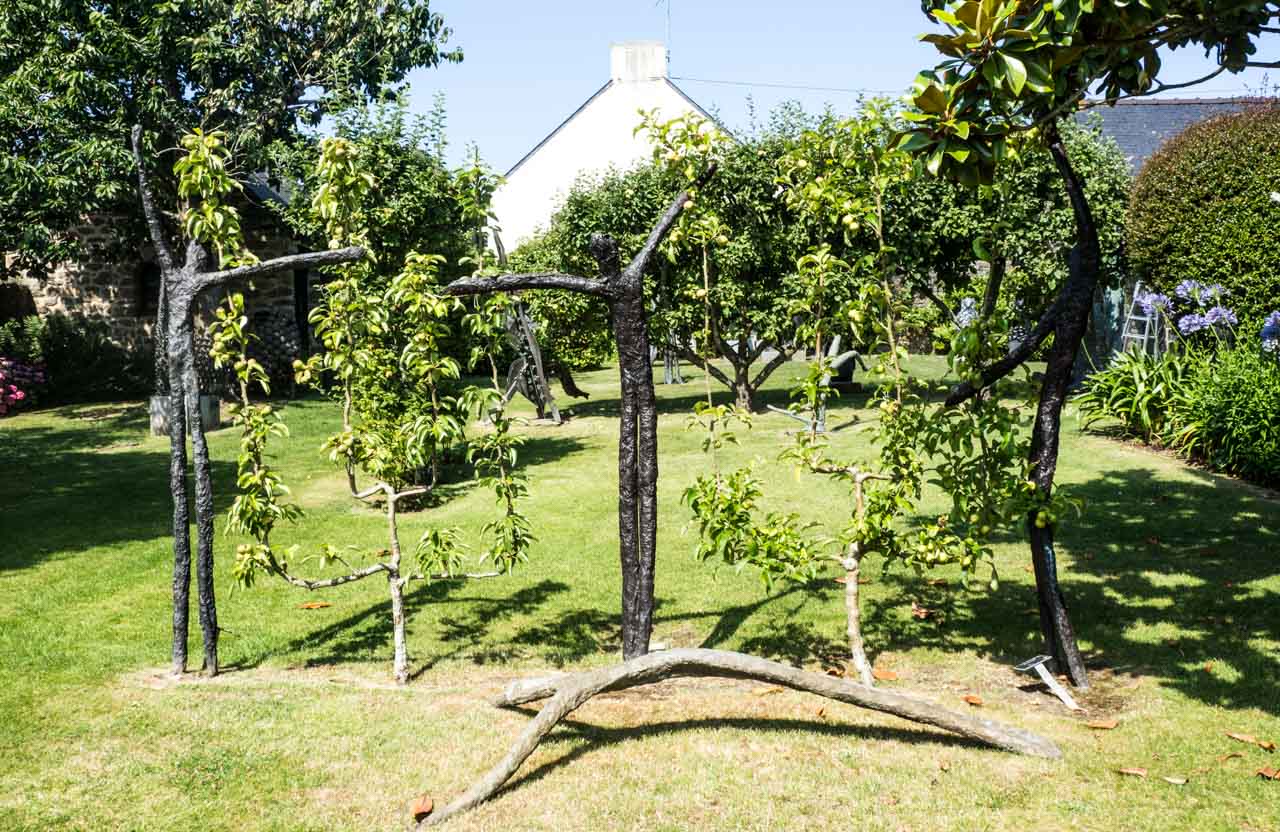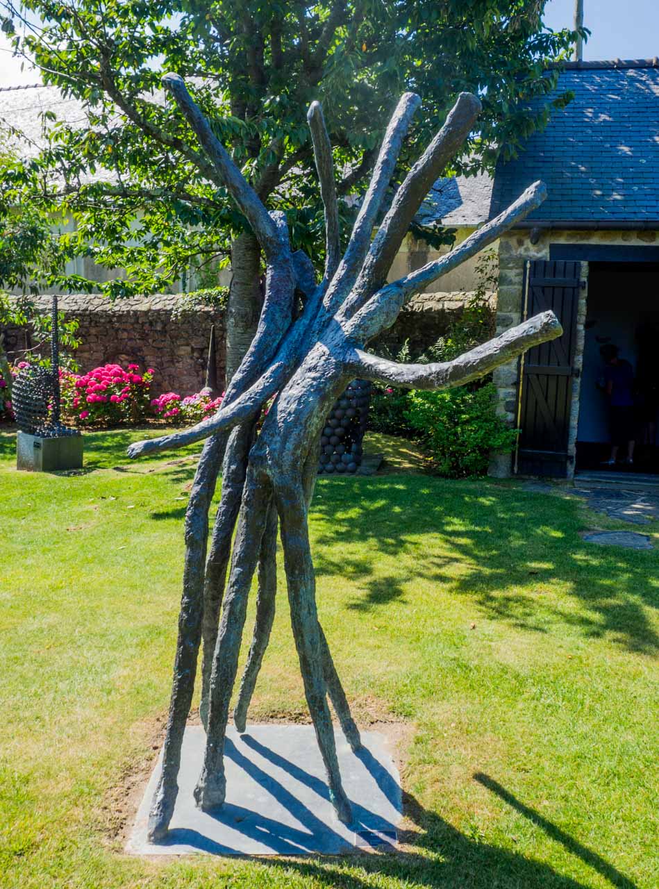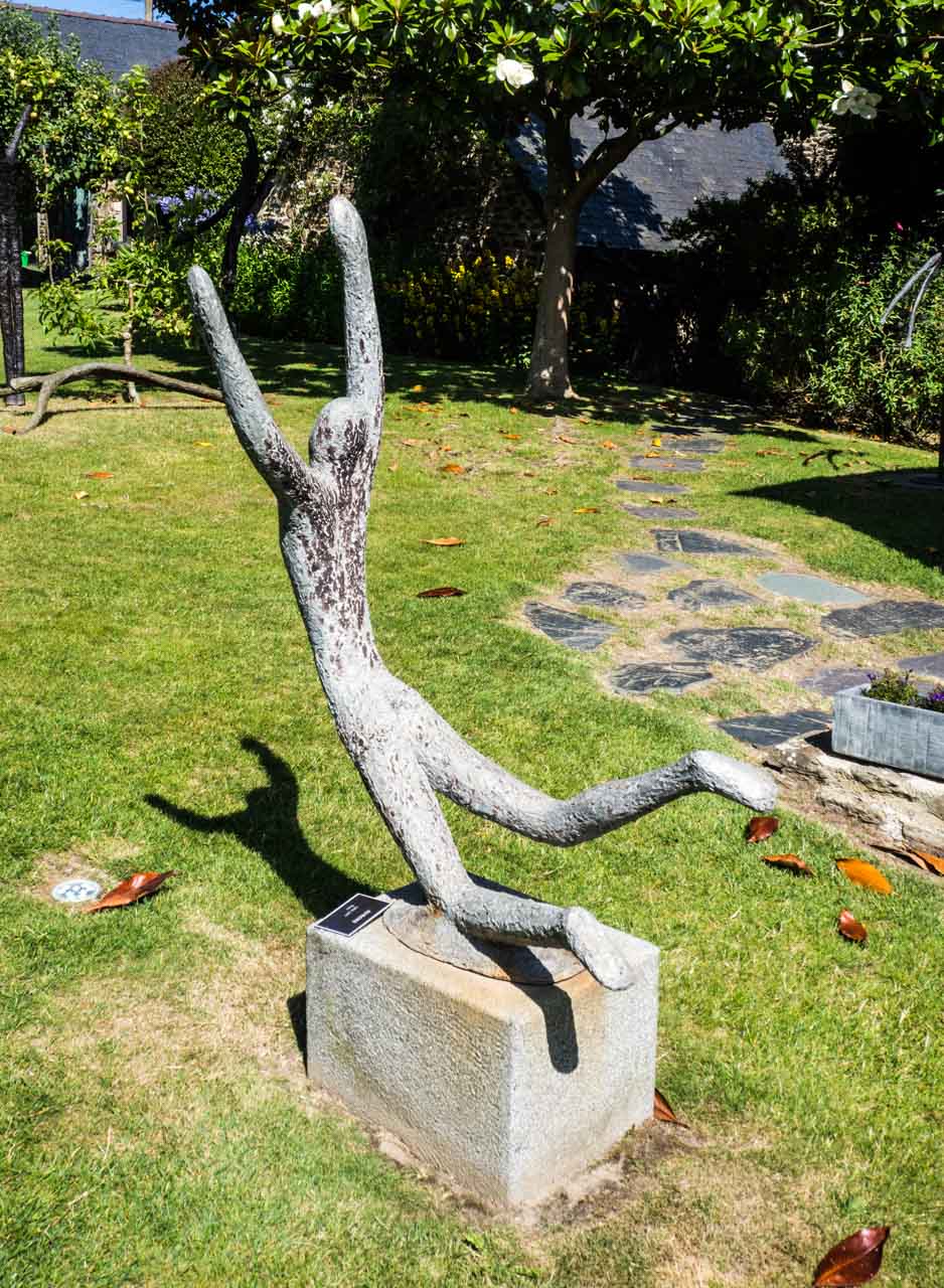 C’est une visite très agréable, j’ai beaucoup aimé le jardin, impeccablement entretenu, et ses sculptures, . Les sculptures se mêlent aux fleurs, font écho aux arbres fruitiers, il faut parfois y regarder à deux fois pour les distinguer.On s’attend presque à voir Pierre Manoli surgir de son atelier…J’ai été impressionnée par la variété des techniques, des matériaux et des thématiques choisis par ce sculpteur cherchant toujours à innover.