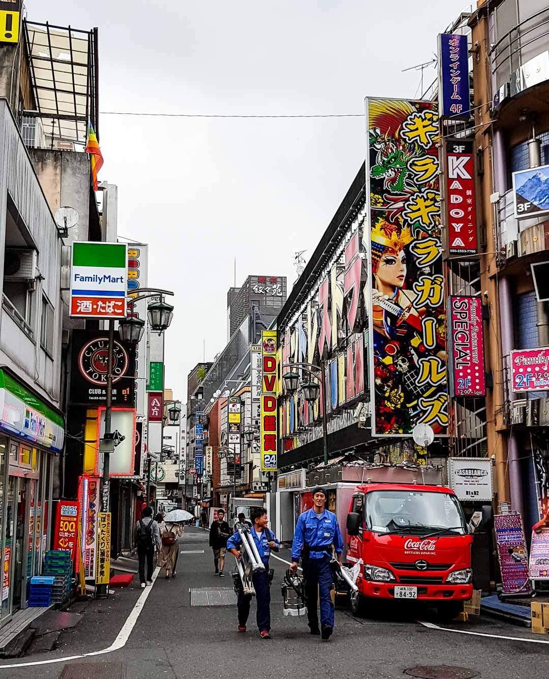 Nous étions en fait en plein milieu du red light district de Tokyo ! Très calme dans la journée, Kabukicho est un quartier très animé à partir de la tombée de la nuit.