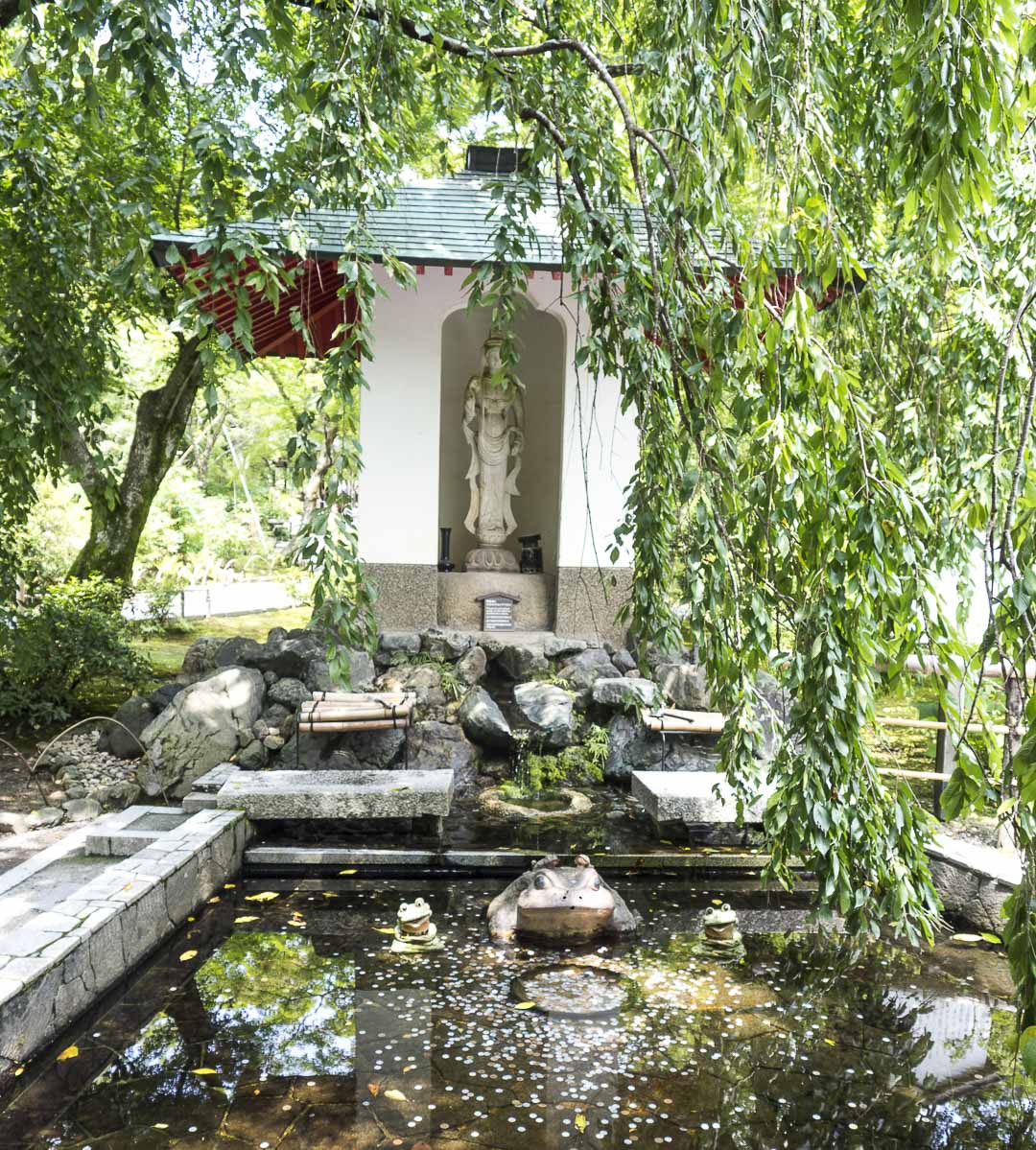 C’est le jardin zen entourant le temple qui nous a séduits, avec son lac et ses arbres sur fond de collines. Il a été conçu par le moine paysagiste (c’est un métier !) Soseki Muso. Le jardin s’intègre magnifiquement dans la montagne environnante.