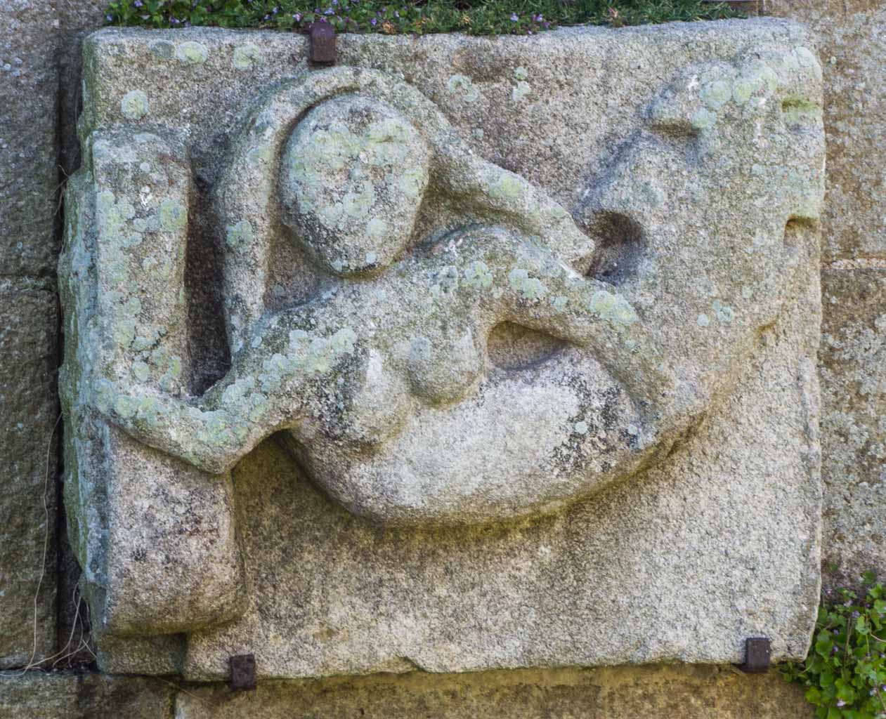 La tour est entourée par un joli jardin fleuri où l’on peut voir un piano qui paraît avoir beaucoup souffert des intempéries…On peut aussi admirer cette sirène portant l’écusson de Gabrielle Glé, marquise de la Vallière, dame du palais royal de la reine en 1703.